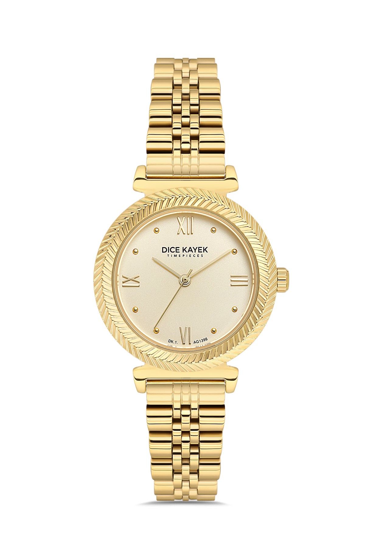 Kadın - Düz - Sari - Sari - Paslanmaz Masi̇f Çeli̇k - 3 Atm - Sertleşti̇ri̇lmi̇ş Mi̇neral Cam - Dice Kayek - 32