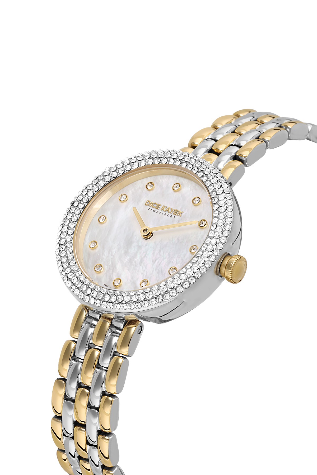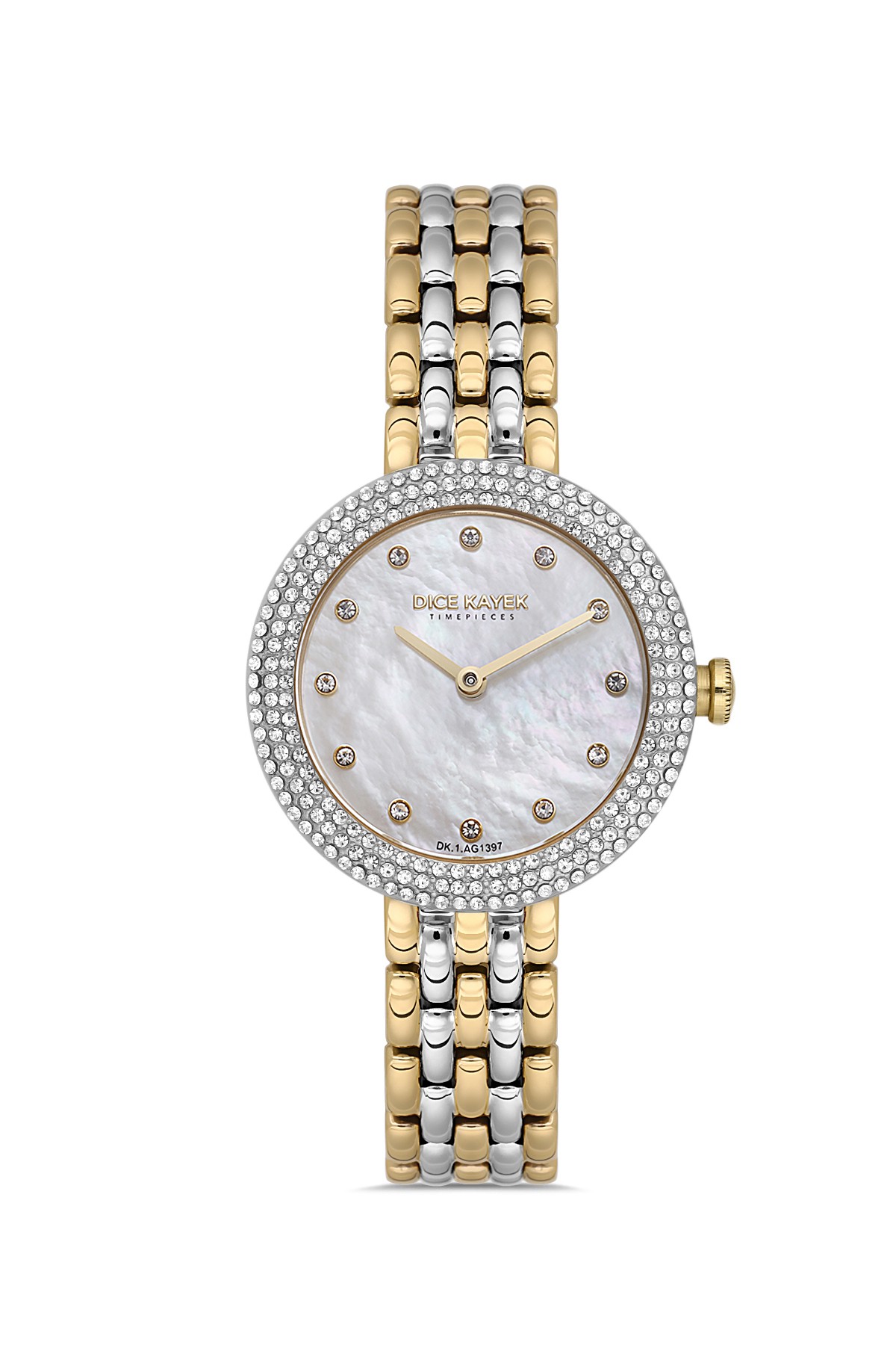Kadın - Taşli - Sari Beyaz - Gümüş - Paslanmaz Masi̇f Çeli̇k - 3 Atm - Sertleşti̇ri̇lmi̇ş Mi̇neral Cam - Dice Kayek - 30
