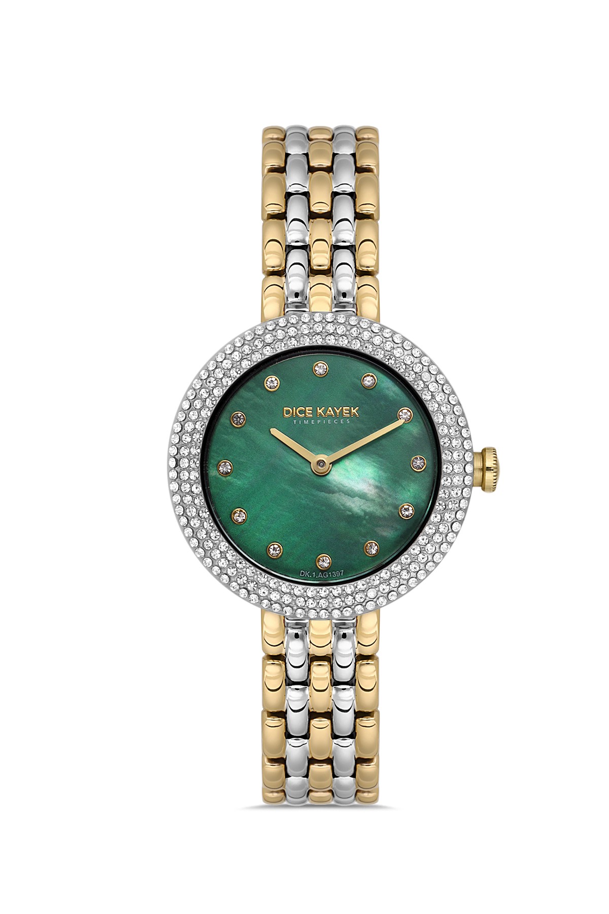 Kadın - Taşli - Sari Beyaz - Yeşi̇l - Paslanmaz Masi̇f Çeli̇k - 3 Atm - Sertleşti̇ri̇lmi̇ş Mi̇neral Cam - Dice Kayek - 30