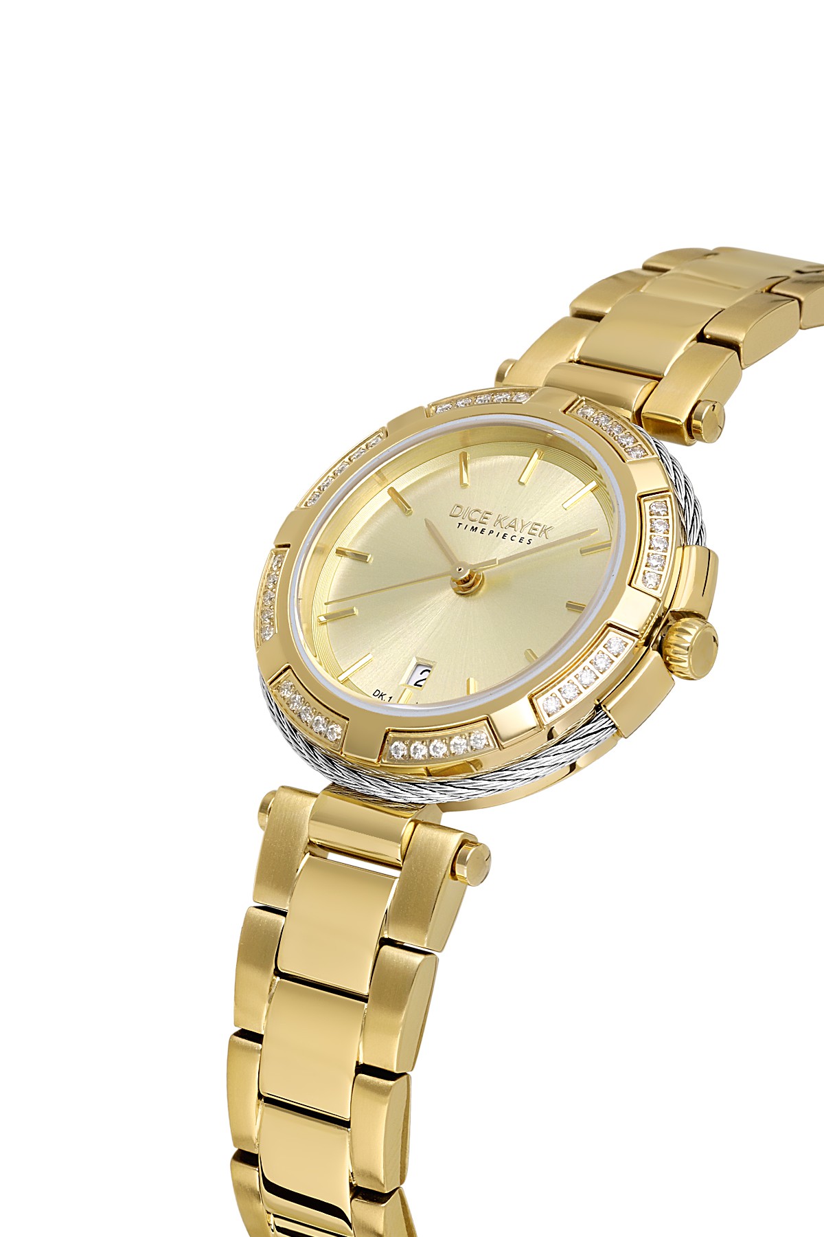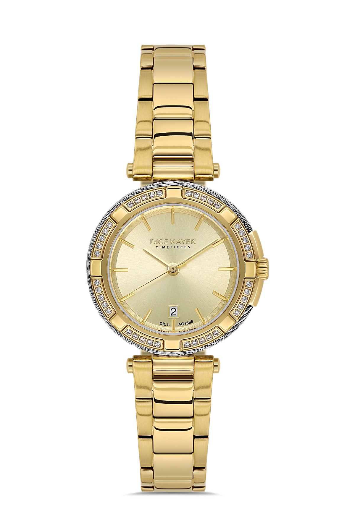 Kadın - Taşli - Sari - Sari - Paslanmaz Masi̇f Çeli̇k - 3 Atm - Sertleşti̇ri̇lmi̇ş Mi̇neral Cam - Dice Kayek - 30