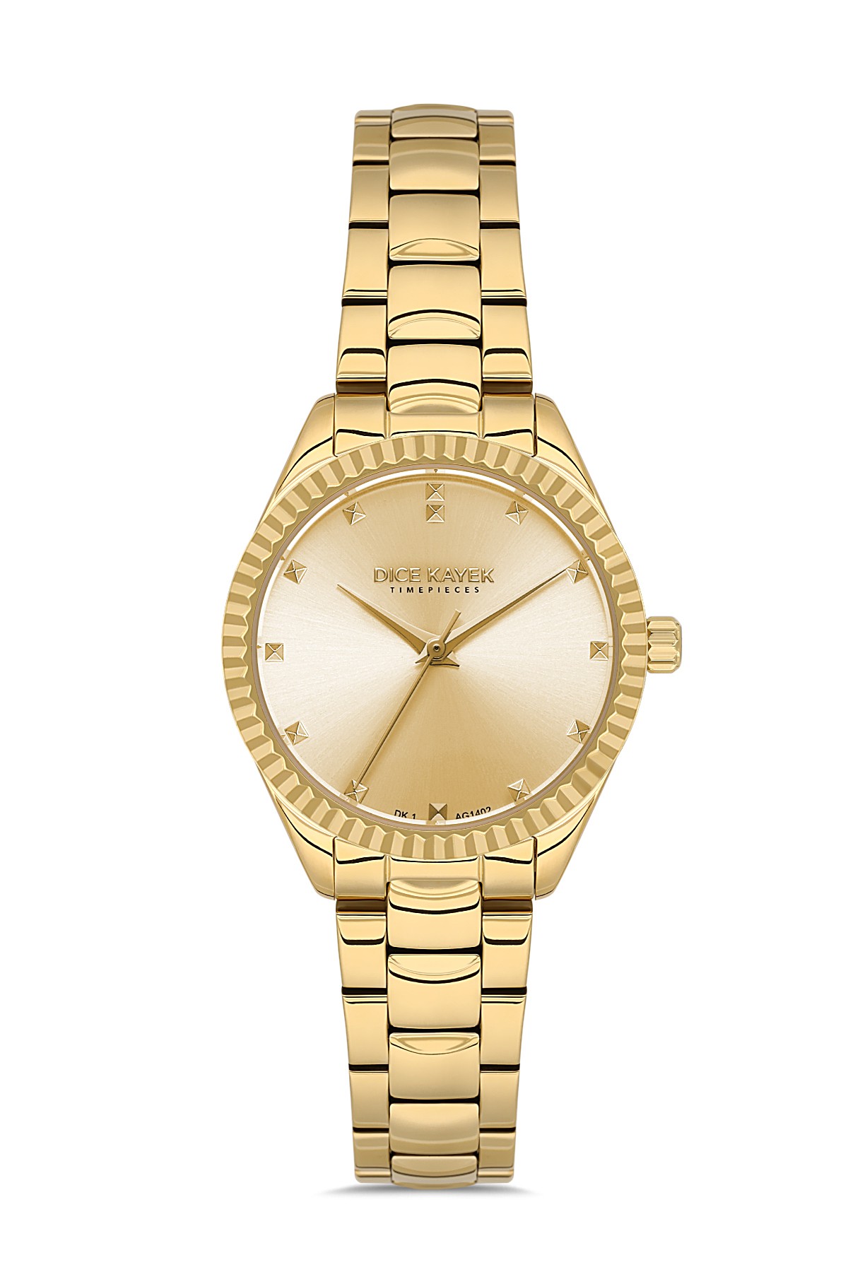 Kadın - Düz - Sari - Sari - Paslanmaz Masi̇f Çeli̇k - 3 Atm - Sertleşti̇ri̇lmi̇ş Mi̇neral Cam - Dice Kayek - 29