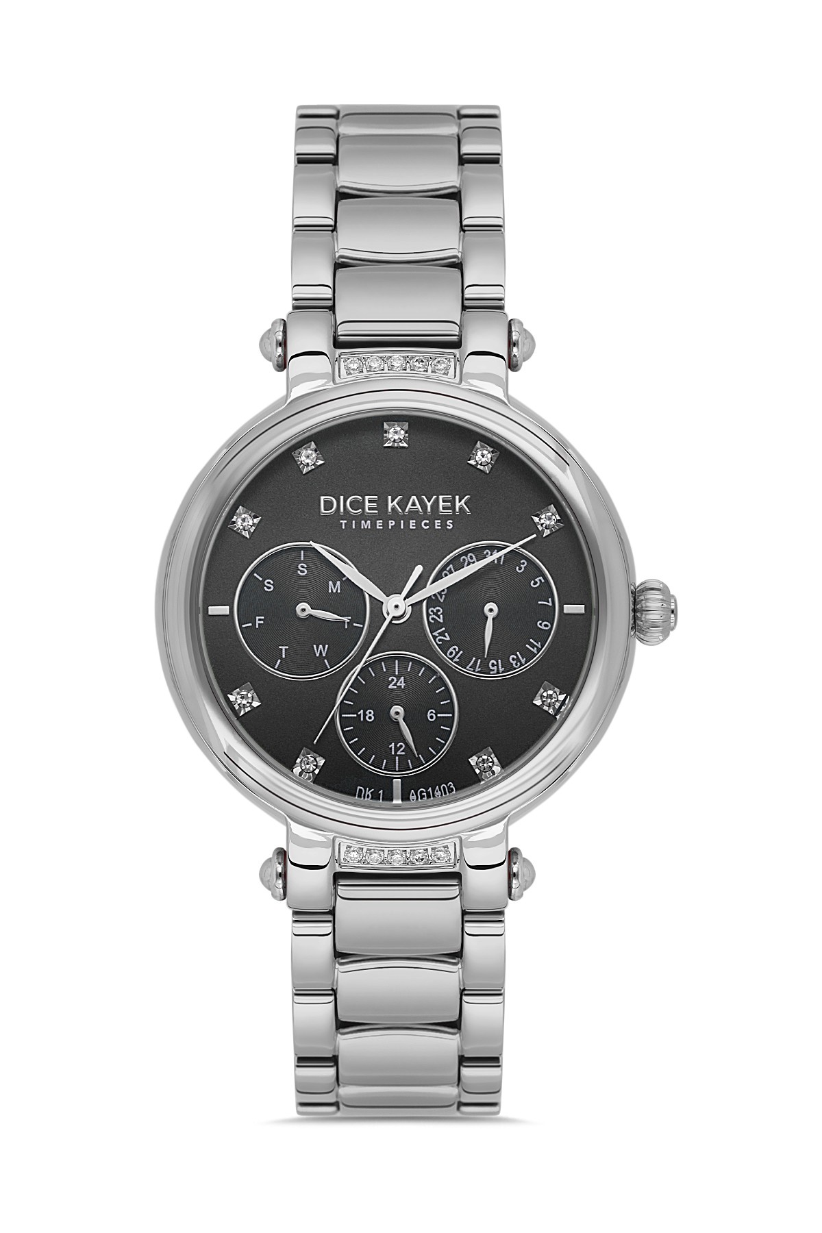 Kadın - Multi̇ Fonksi̇yon - Gümüş - Si̇yah - Paslanmaz Masi̇f Çeli̇k - 3 Atm - Sertleşti̇ri̇lmi̇ş Mi̇neral Cam - Dice Kayek - 35