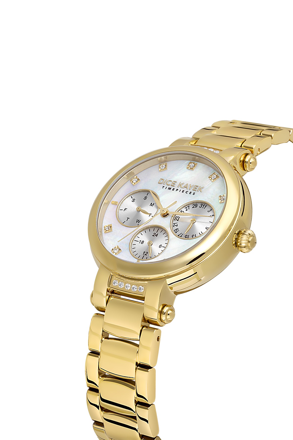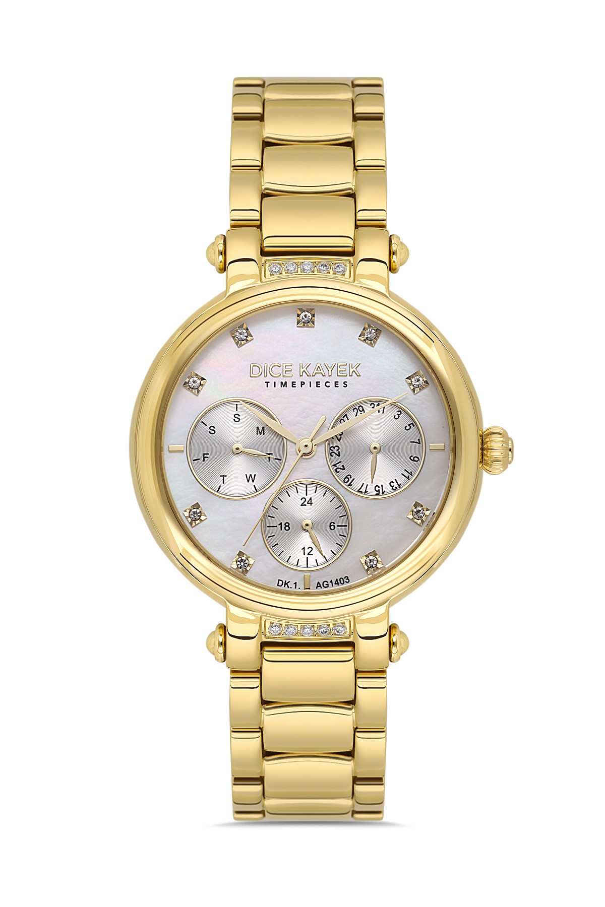 Kadın - Multi̇ Fonksi̇yon - Sari - Gümüş - Paslanmaz Masi̇f Çeli̇k - 3 Atm - Sertleşti̇ri̇lmi̇ş Mi̇neral Cam - Dice Kayek - 35