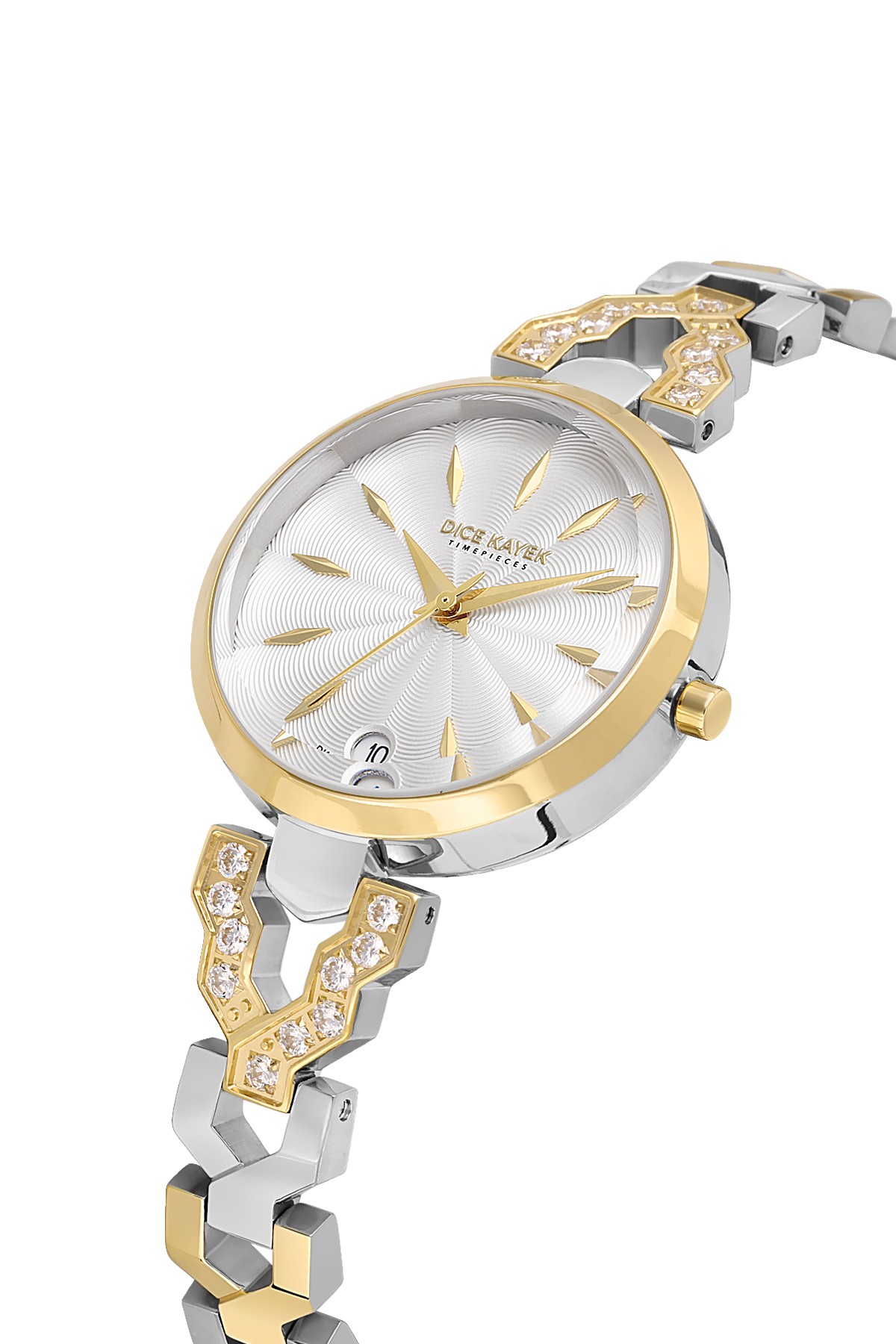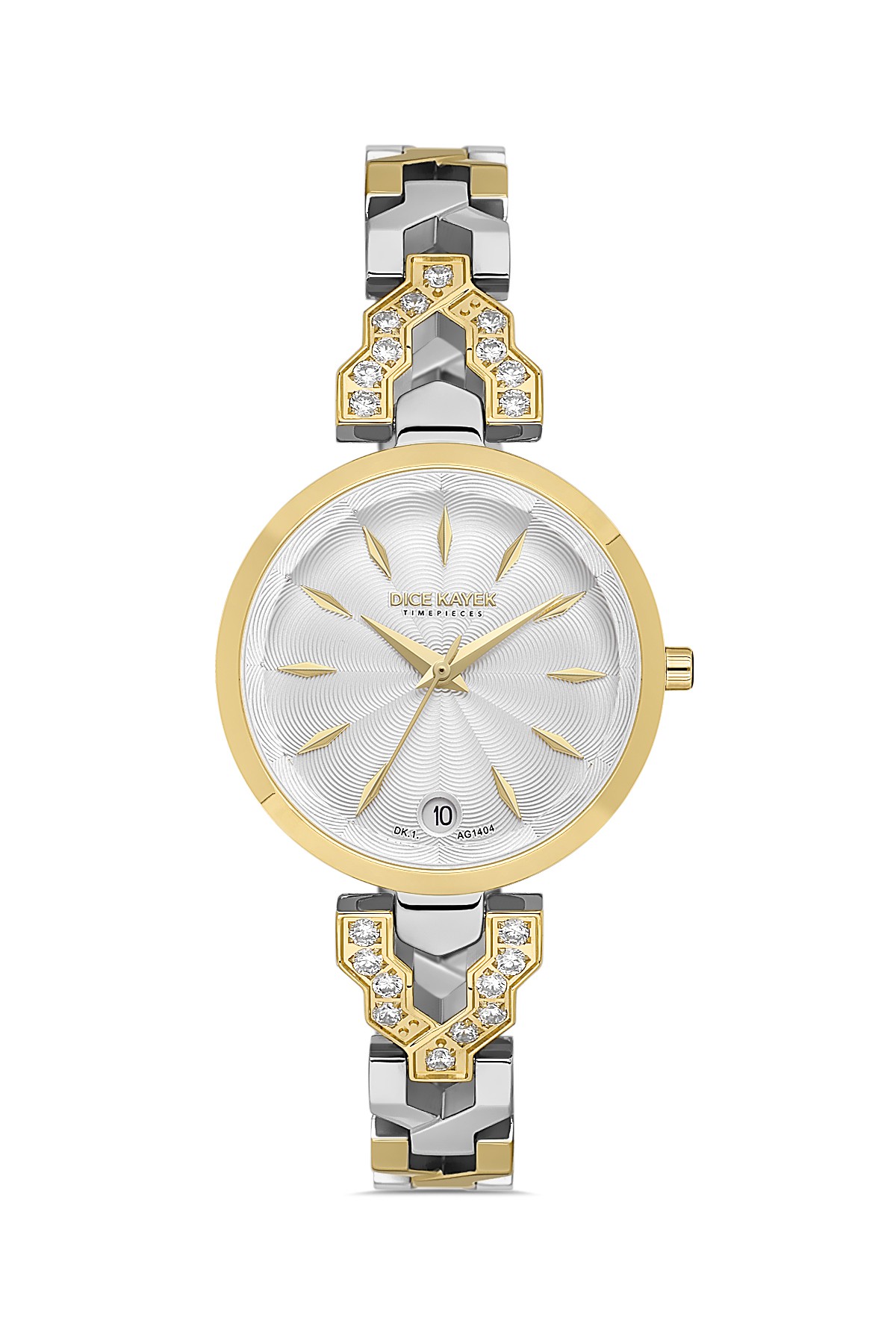 Kadın - Takvi̇mli̇ - Sari Beyaz - Gümüş - Paslanmaz Masi̇f Çeli̇k - 3 Atm - Sertleşti̇ri̇lmi̇ş Mi̇neral Cam - Dice Kayek - 30