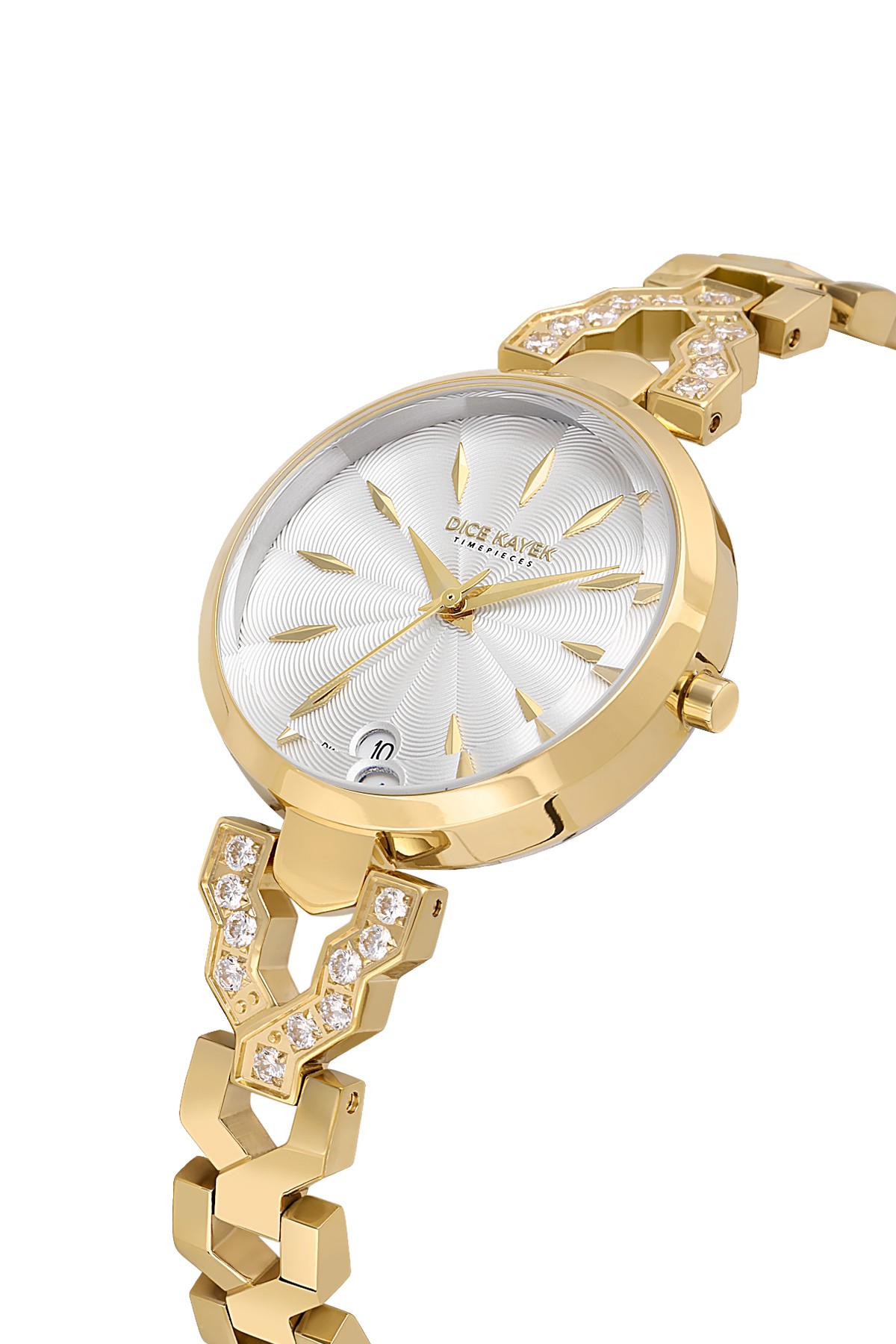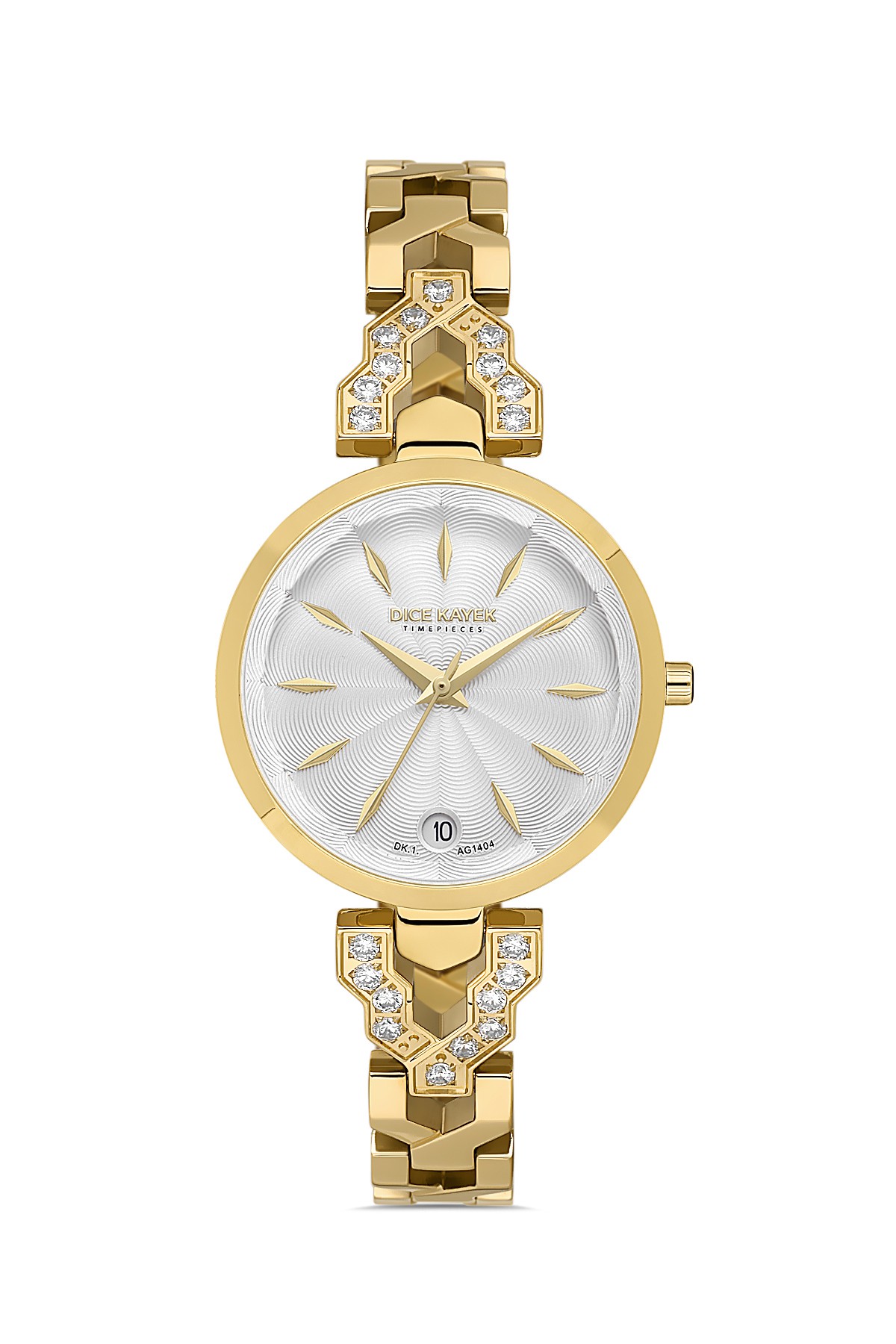 Kadın - Takvi̇mli̇ - Sari - Gümüş - Paslanmaz Masi̇f Çeli̇k - 3 Atm - Sertleşti̇ri̇lmi̇ş Mi̇neral Cam - Dice Kayek - 30