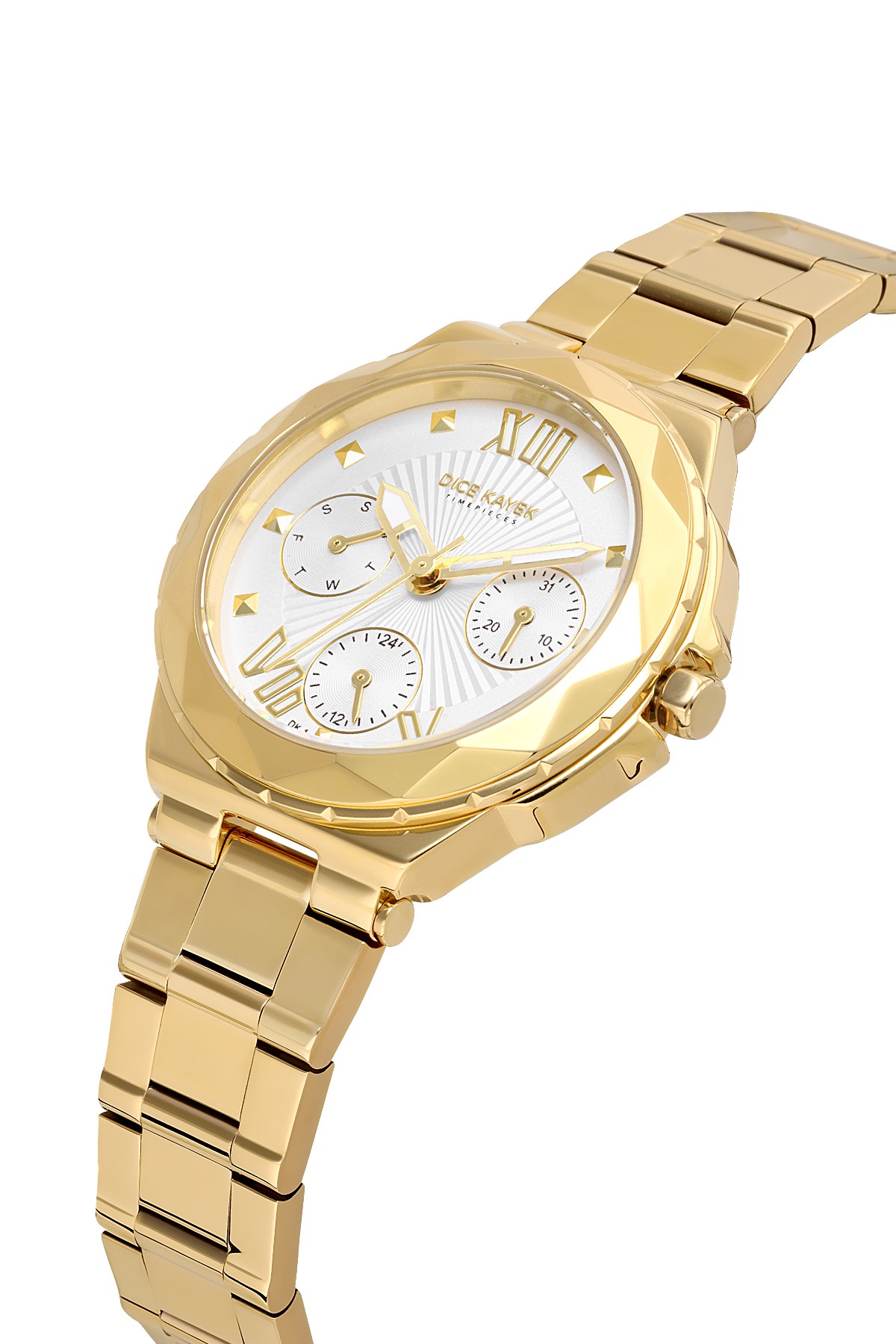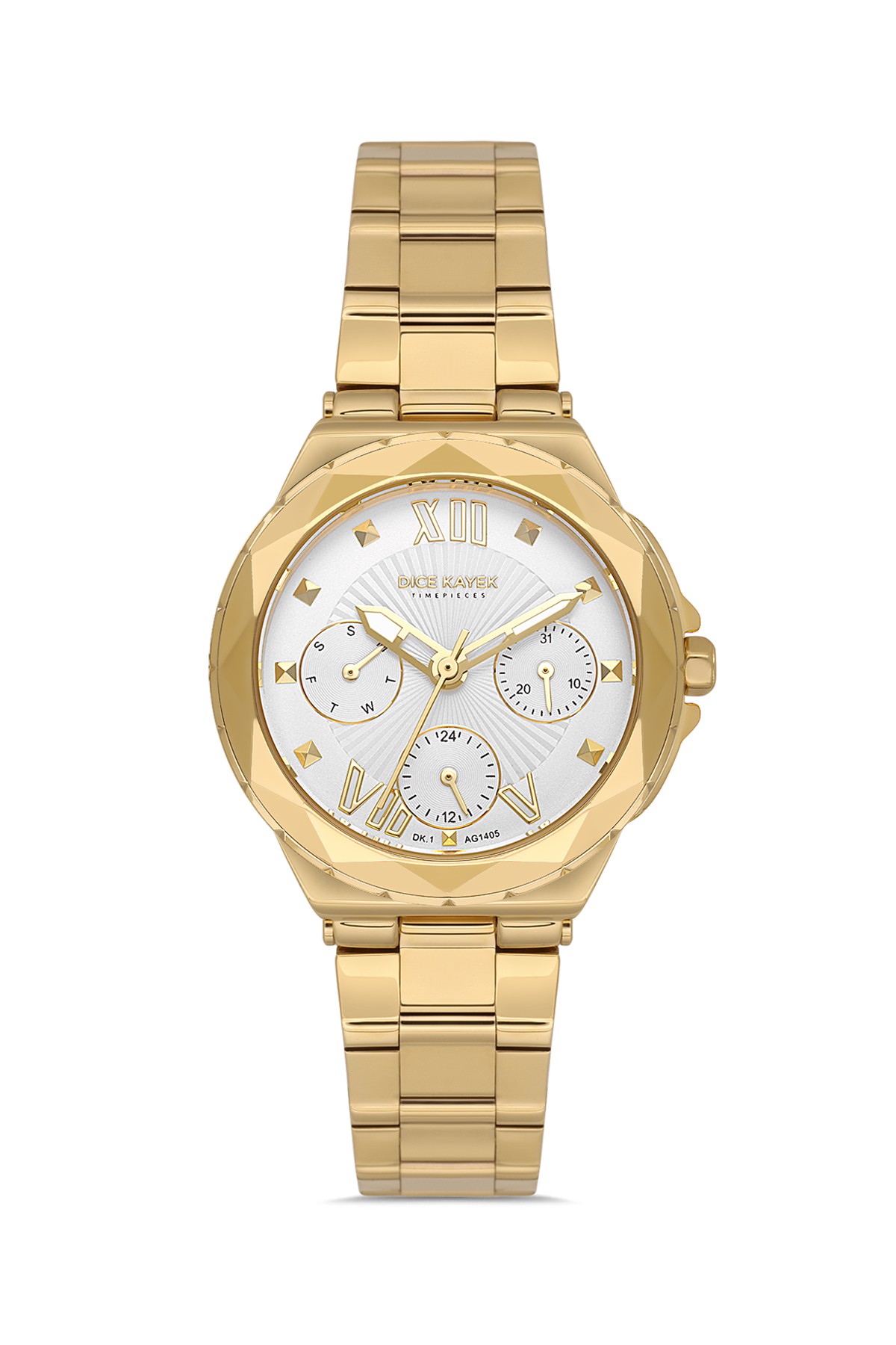 Kadın - Multi̇ Fonksi̇yon - Sari - Gümüş - Paslanmaz Masi̇f Çeli̇k - 5 Atm - Sertleşti̇ri̇lmi̇ş Mi̇neral Cam - Dice Kayek - 34