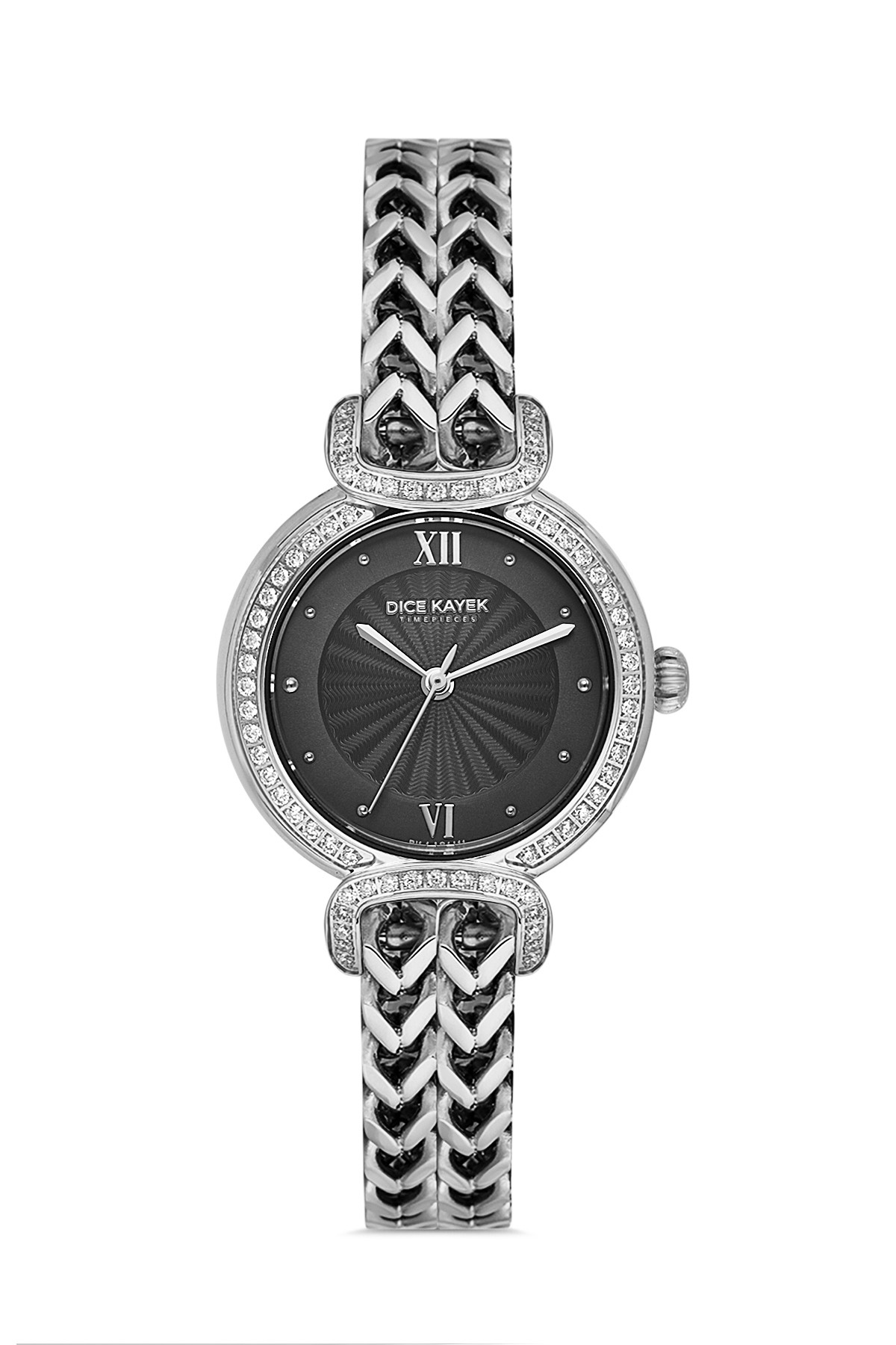 Kadın - Taşli - Gümüş - Si̇yah - Paslanmaz Masi̇f Çeli̇k - 3 Atm - Sertleşti̇ri̇lmi̇ş Mi̇neral Cam - Dice Kayek - 28