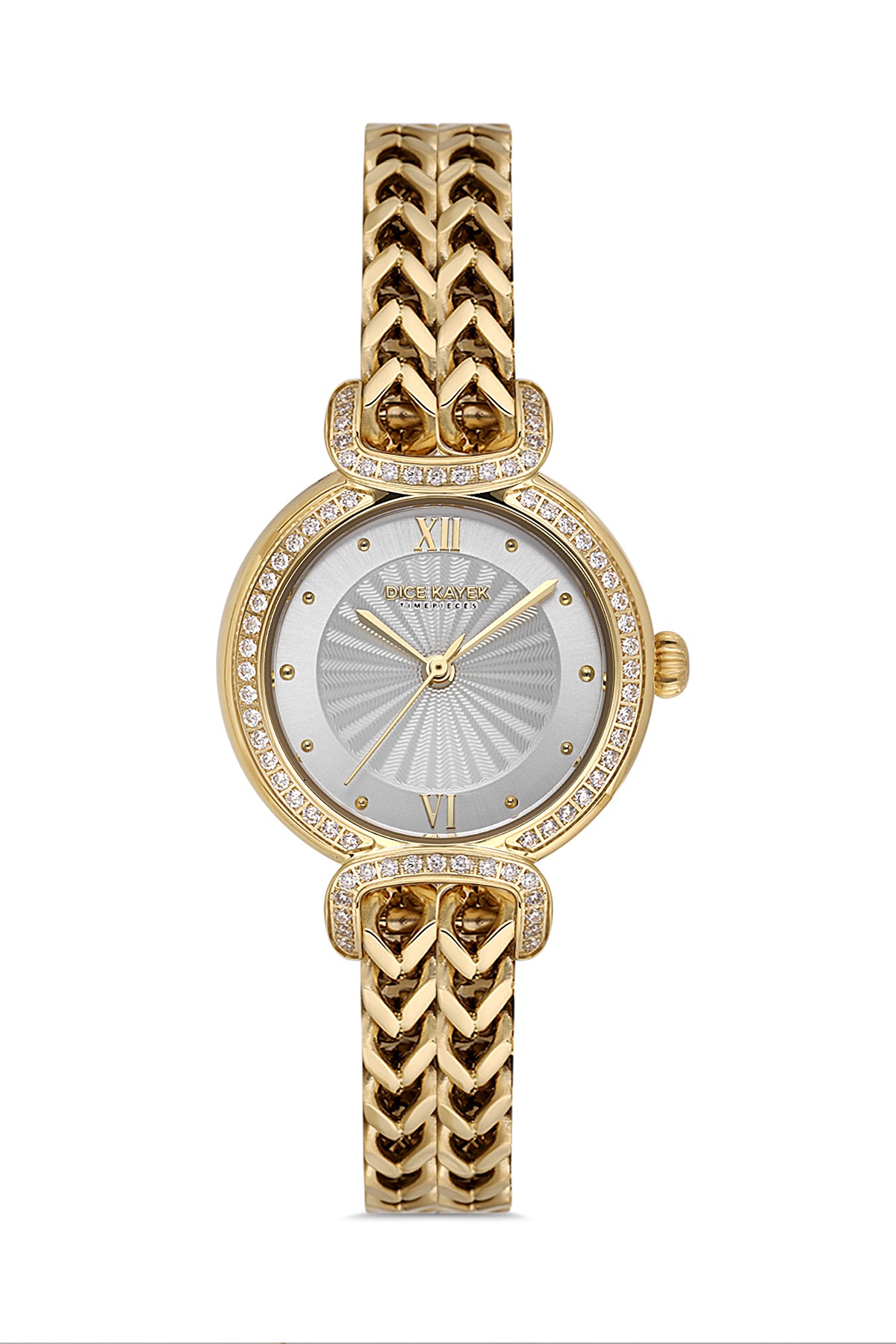 Kadın - Taşli - Sari - Gümüş - Paslanmaz Masi̇f Çeli̇k - 3 Atm - Sertleşti̇ri̇lmi̇ş Mi̇neral Cam - Dice Kayek - 28