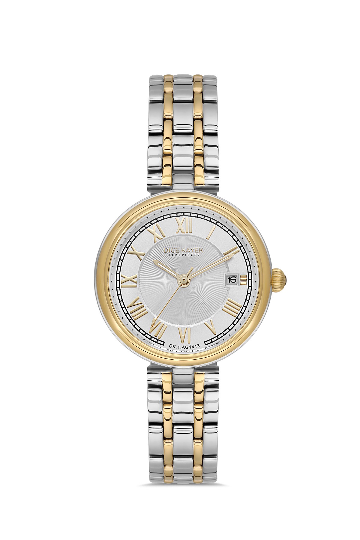 Kadın - Takvi̇mli̇ - Sari Beyaz - Gümüş - Paslanmaz Masi̇f Çeli̇k - 5 Atm - Sertleşti̇ri̇lmi̇ş Mi̇neral Cam - Dice Kayek - 29