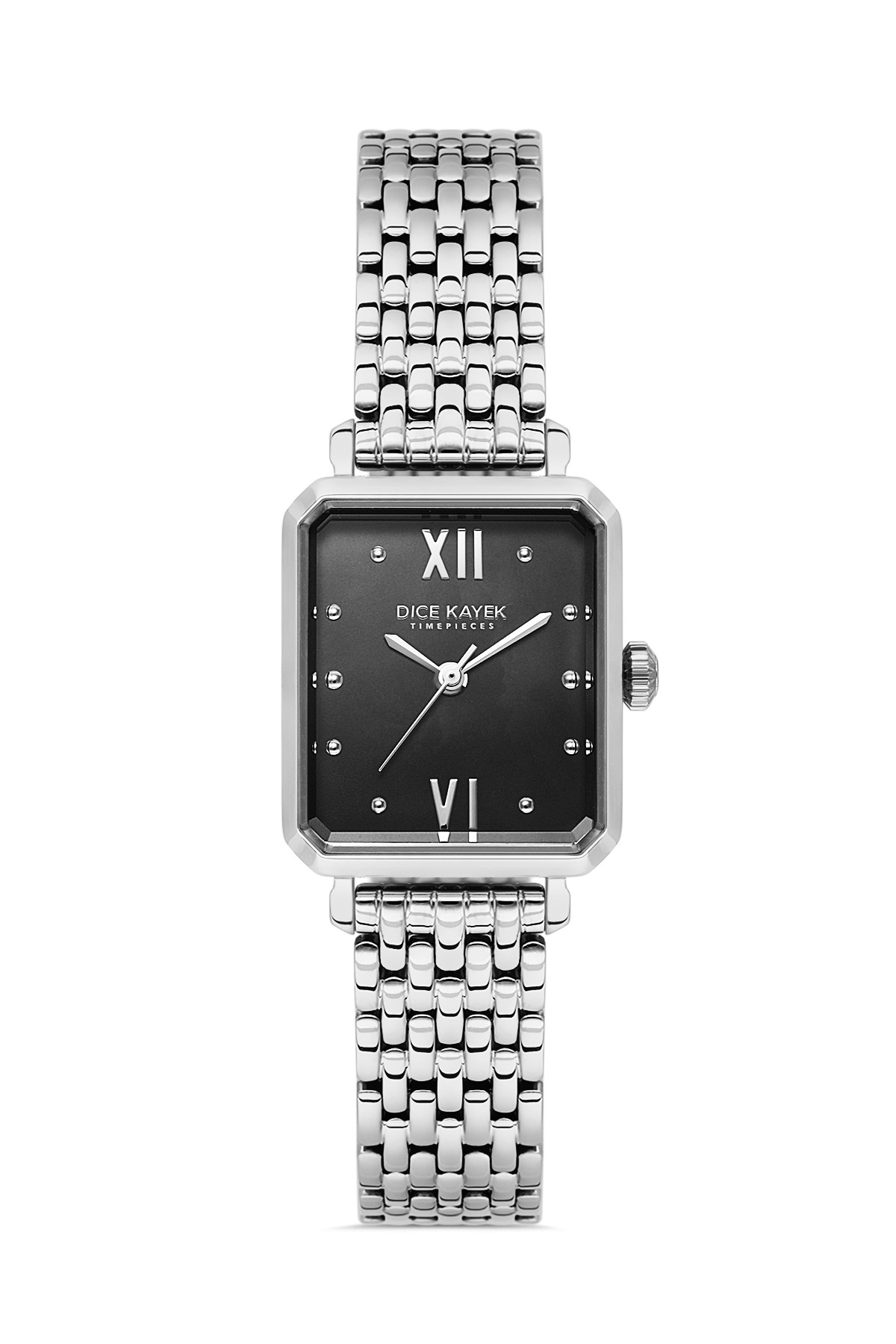 Kadın - Düz - Gümüş - Si̇yah - Paslanmaz Masi̇f Çeli̇k - 3 Atm - Sertleşti̇ri̇lmi̇ş Mi̇neral Cam - Dice Kayek - 23*26