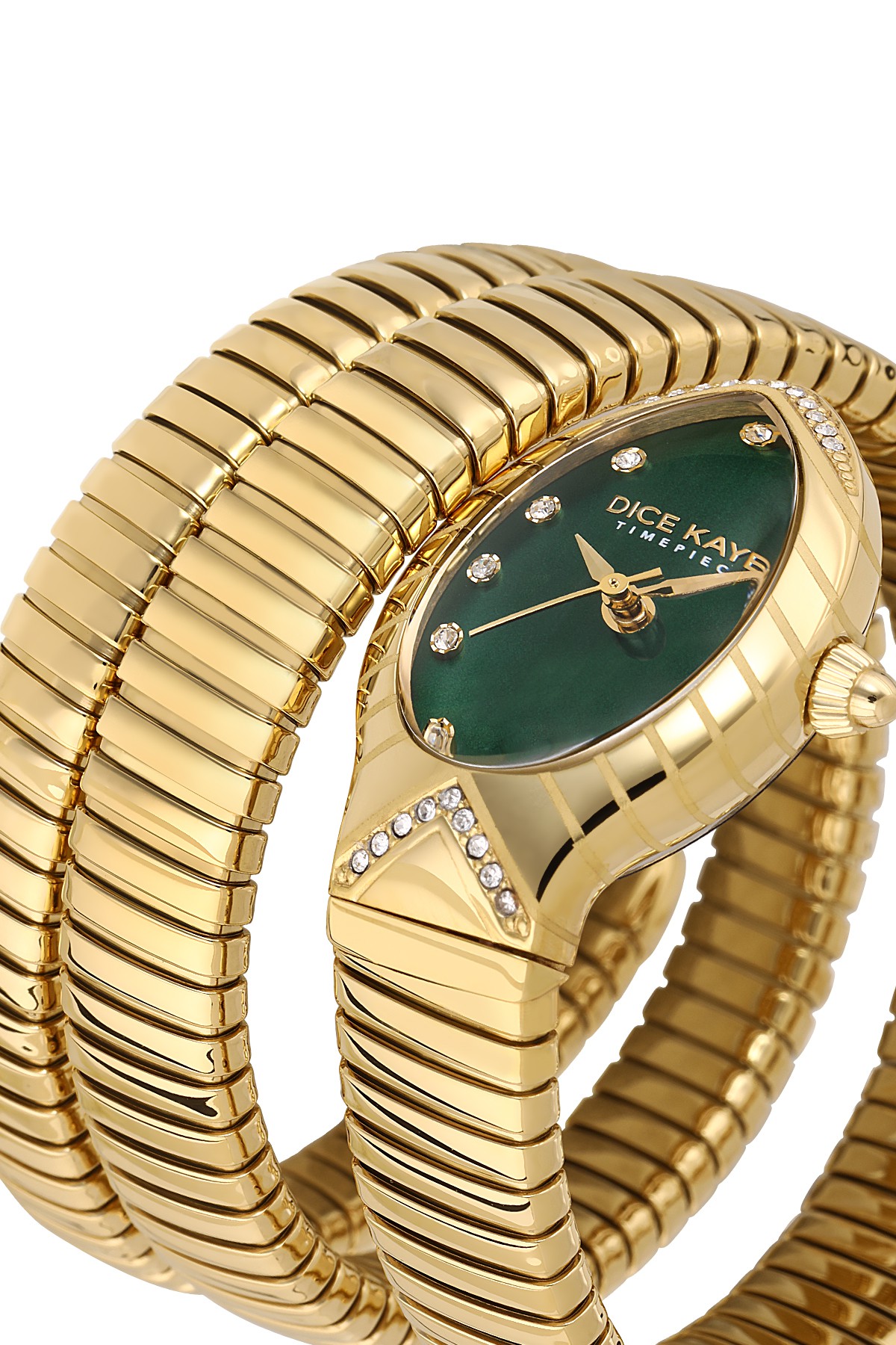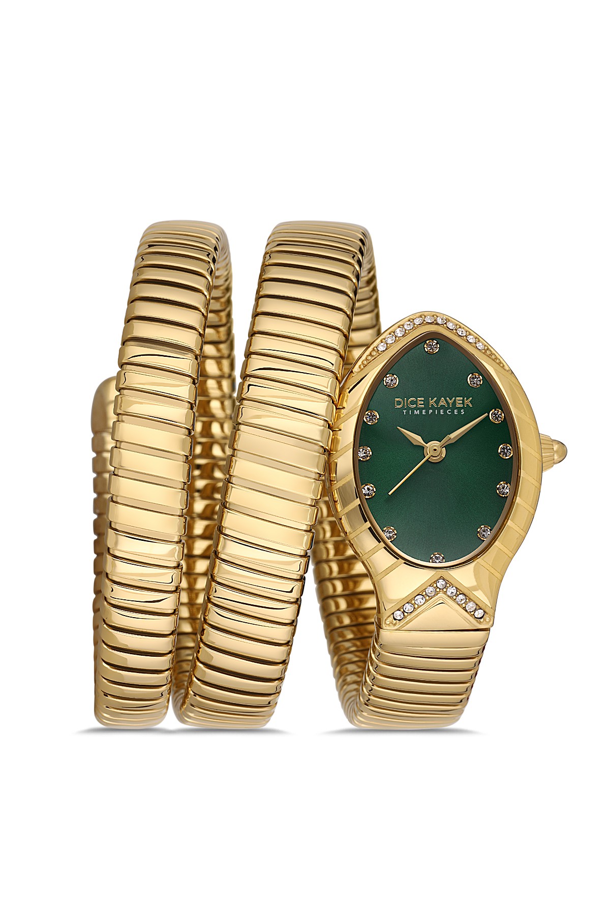Kadın - Taşli - Sari - Yeşi̇l - Paslanmaz Masi̇f Çeli̇k - 3 Atm - Sertleşti̇ri̇lmi̇ş Mi̇neral Cam - Dice Kayek - 23