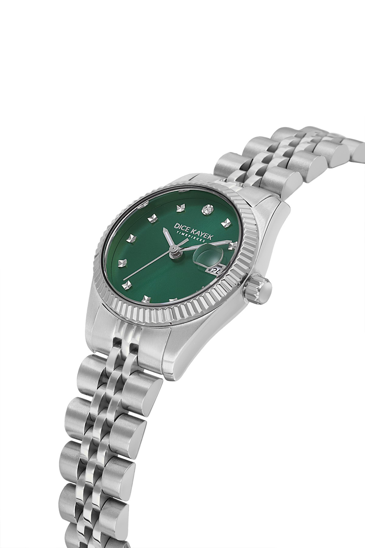 Kadın - Takvi̇mli̇ - Gümüş - Yeşi̇l - Paslanmaz Masi̇f Çeli̇k - 5 Atm - Sertleşti̇ri̇lmi̇ş Mi̇neral Cam - Dice Kayek - 25