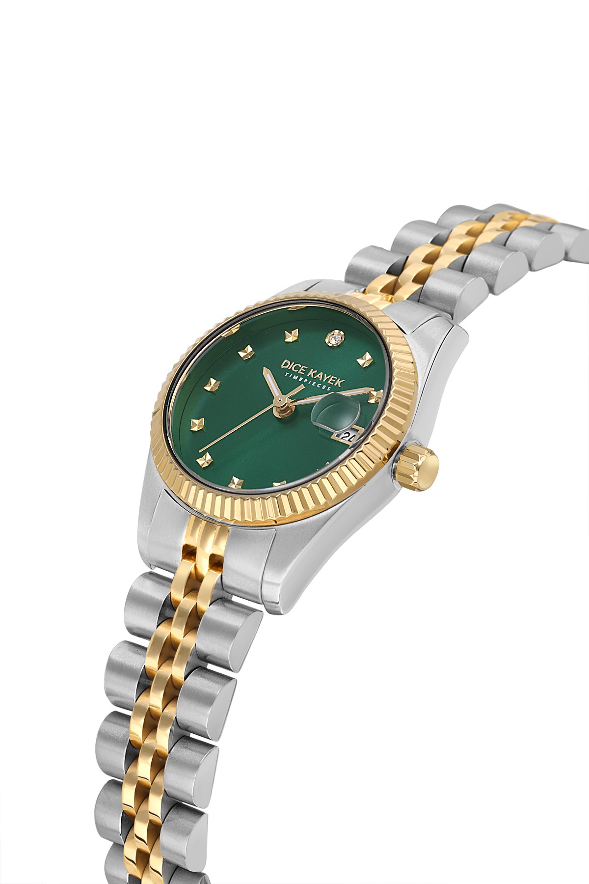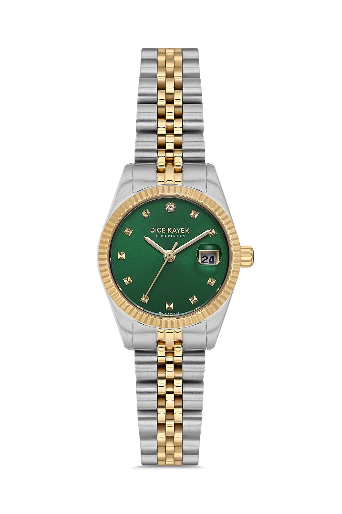Kadın - Takvi̇mli̇ - Sari Beyaz - Yeşi̇l - Paslanmaz Masi̇f Çeli̇k - 5 Atm - Sertleşti̇ri̇lmi̇ş Mi̇neral Cam - Dice Kayek - 25