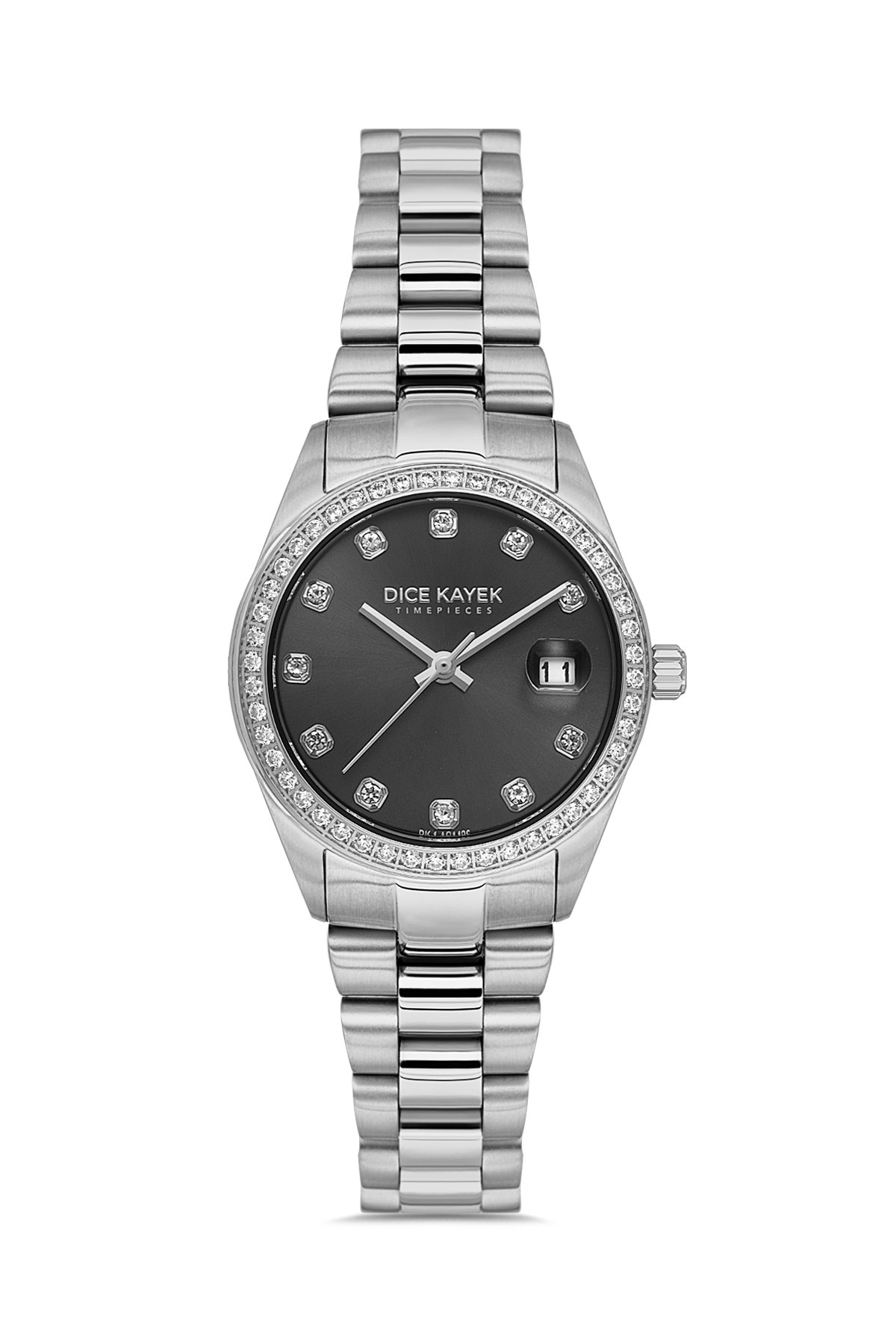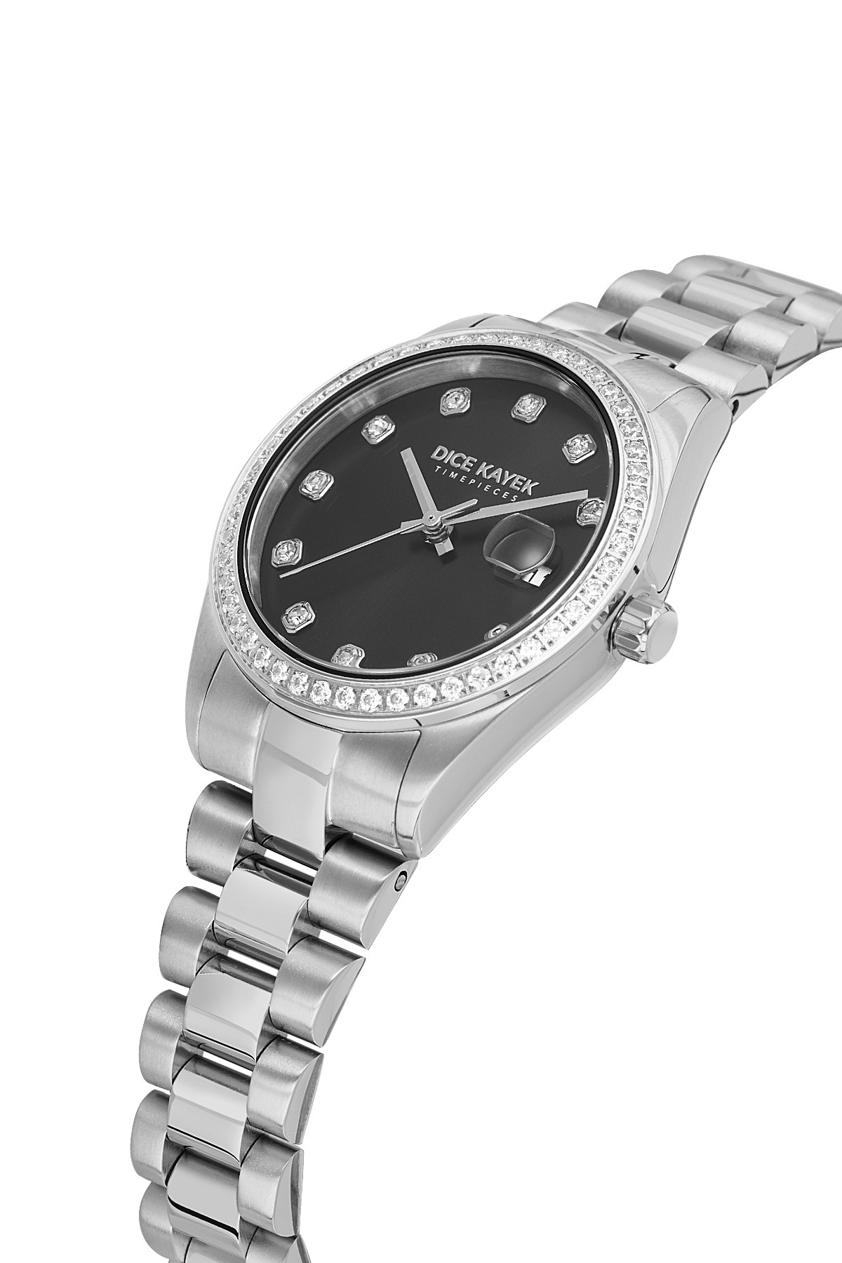 Kadın - Taşli - Gümüş - Si̇yah - Paslanmaz Masi̇f Çeli̇k - 5 Atm - Sertleşti̇ri̇lmi̇ş Mi̇neral Cam - Dice Kayek - 30