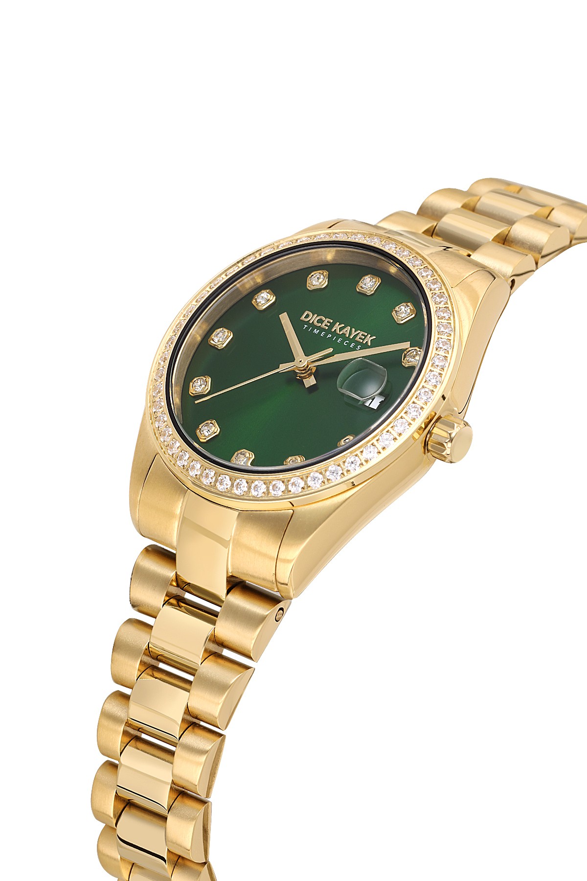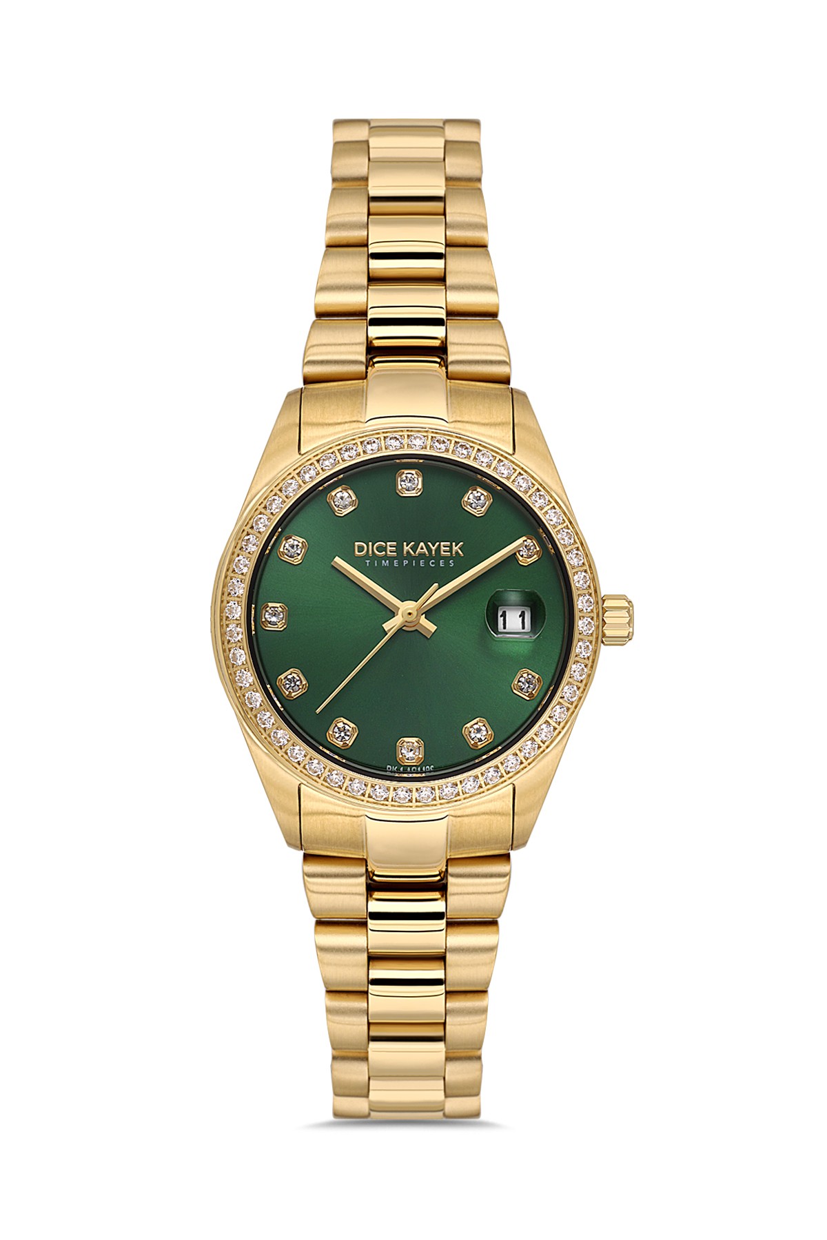 Kadın - Taşli - Sari - Yeşi̇l - Paslanmaz Masi̇f Çeli̇k - 5 Atm - Sertleşti̇ri̇lmi̇ş Mi̇neral Cam - Dice Kayek - 30