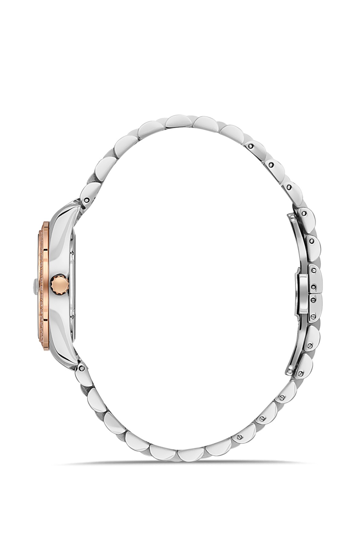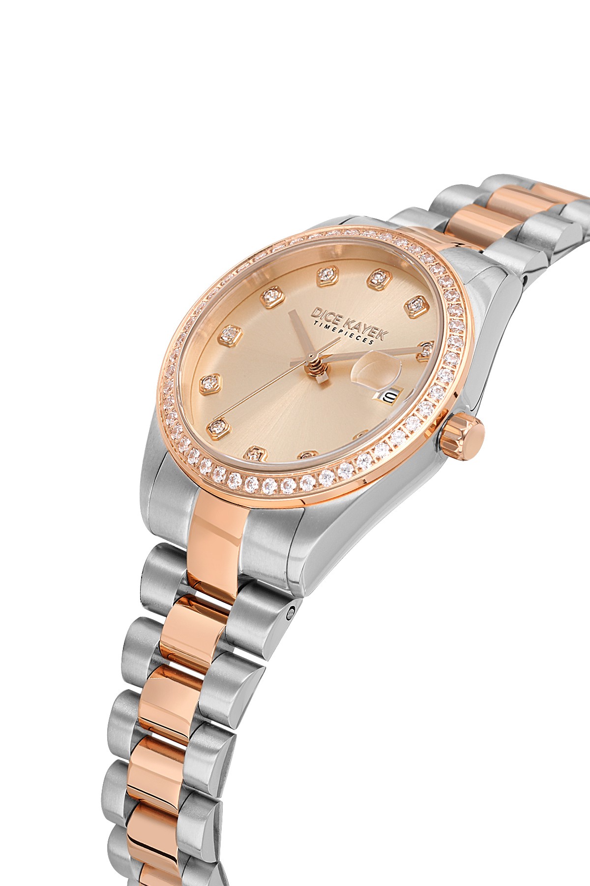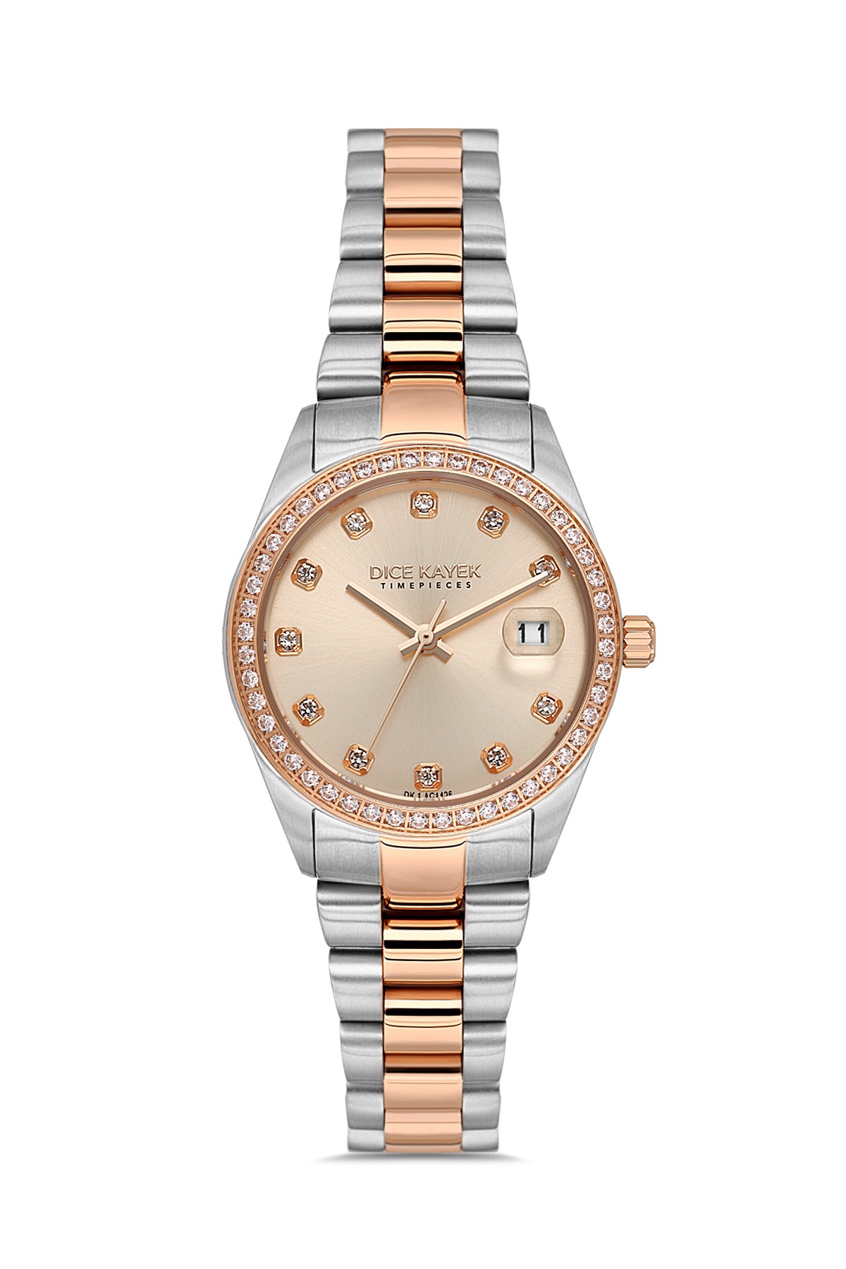Kadın - Taşli - Rose Beyaz - Kahverengi̇ - Paslanmaz Masi̇f Çeli̇k - 5 Atm - Sertleşti̇ri̇lmi̇ş Mi̇neral Cam - Dice Kayek - 30