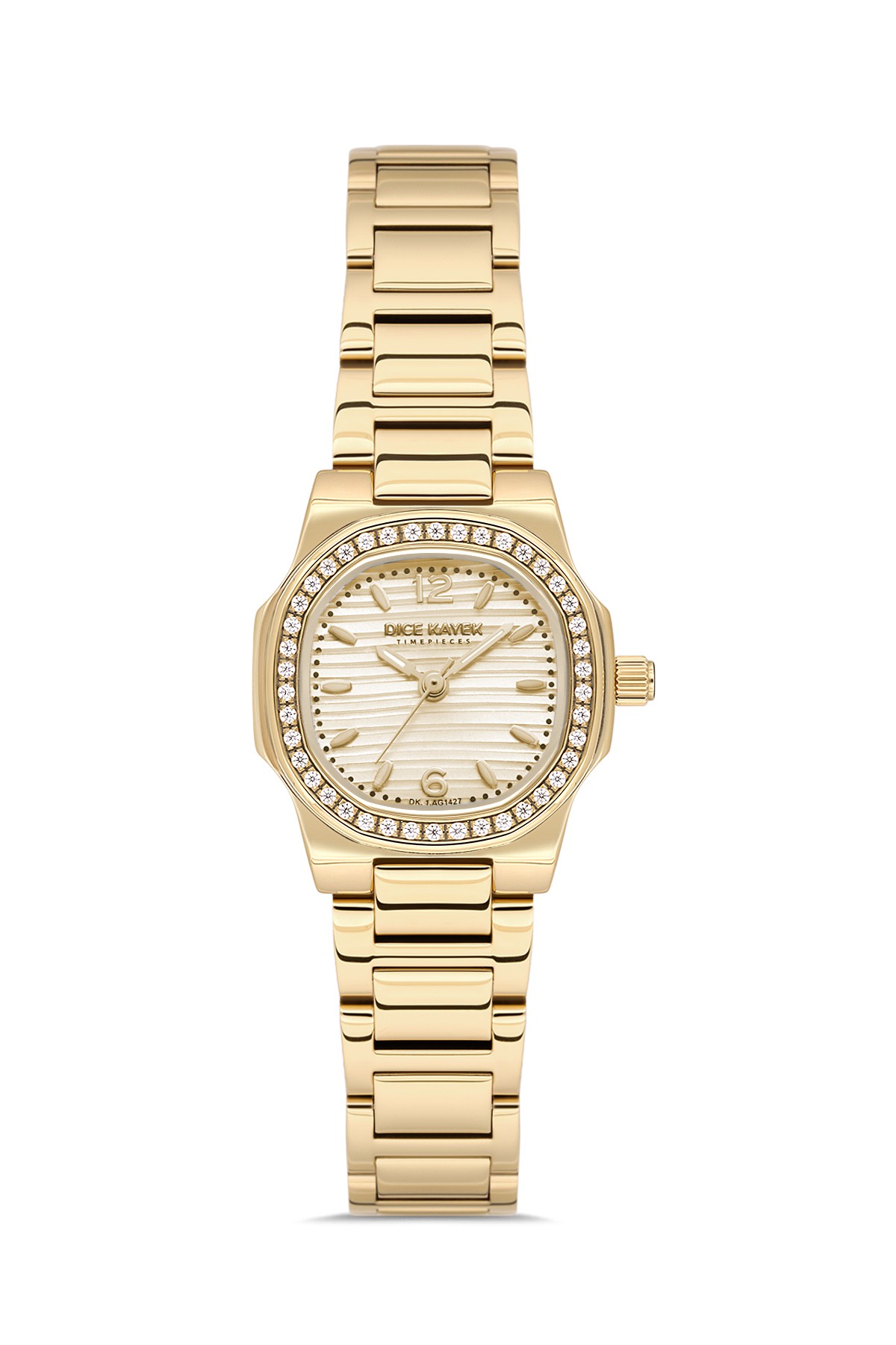 Kadın - Taşli - Sari - Sari - Paslanmaz Masi̇f Çeli̇k - 5 Atm - Sertleşti̇ri̇lmi̇ş Mi̇neral Cam - Dice Kayek - 25*25