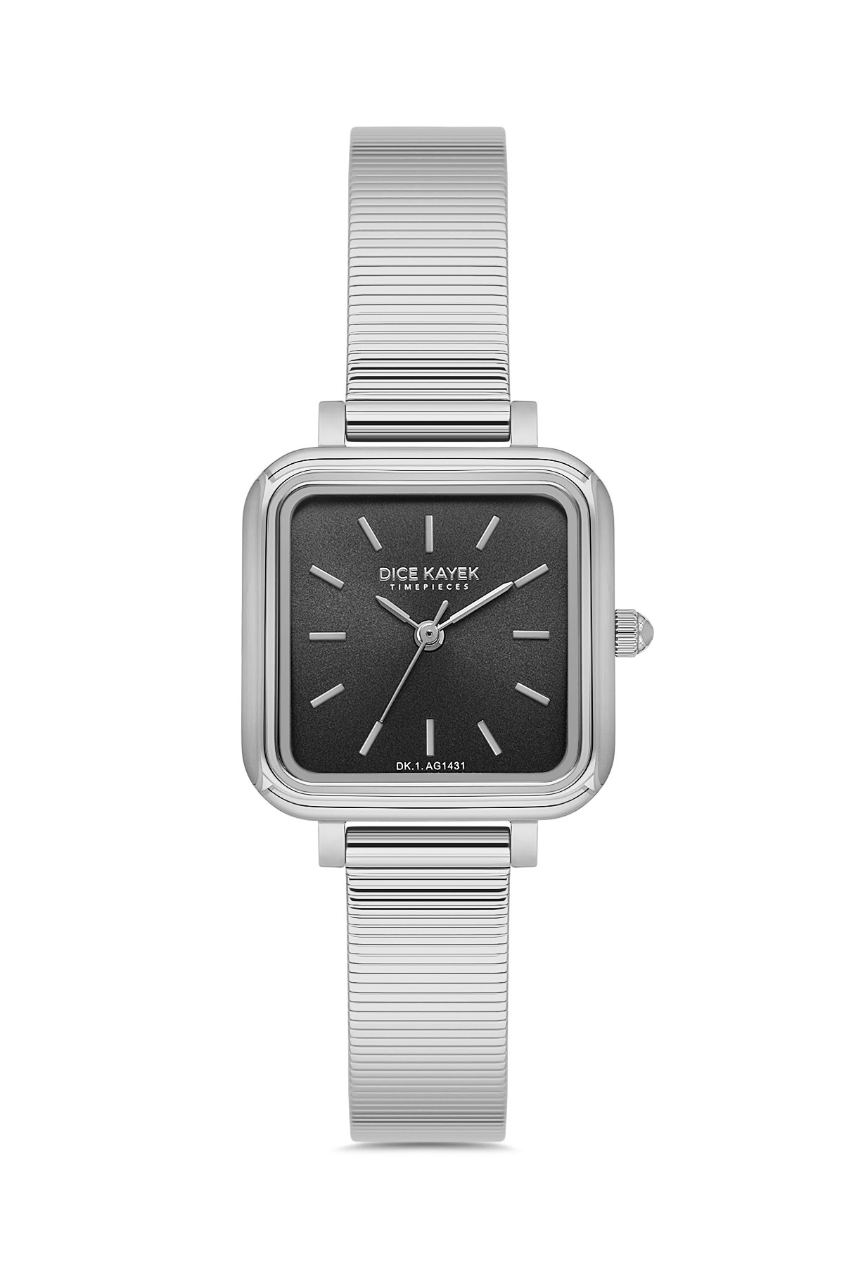 Kadın - Düz - Gümüş - Si̇yah - Paslanmaz Masi̇f Çeli̇k - 3 Atm - Sertleşti̇ri̇lmi̇ş Mi̇neral Cam - Dice Kayek - 23*23