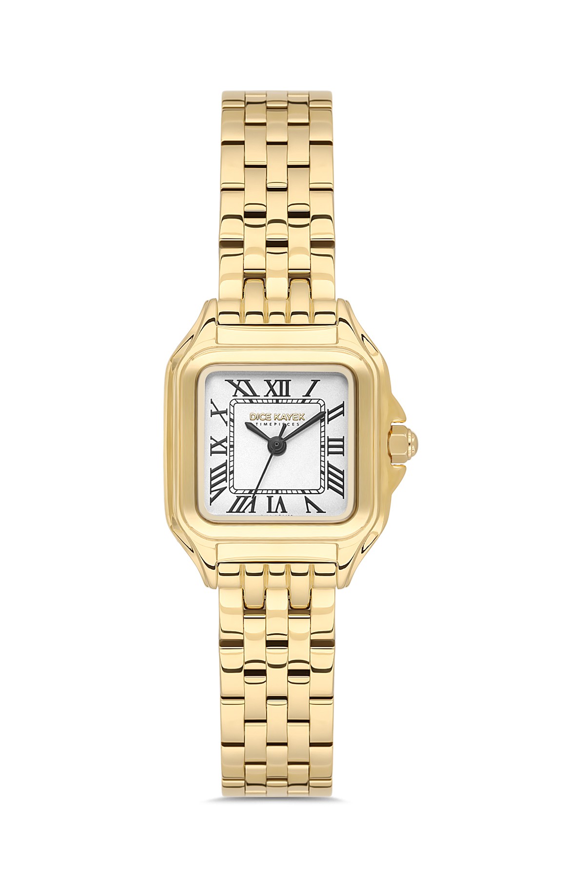 Kadın - Düz - Sari - Gümüş - Paslanmaz Masi̇f Çeli̇k - 3 Atm - Sertleşti̇ri̇lmi̇ş Mi̇neral Cam - Dice Kayek - 24*24