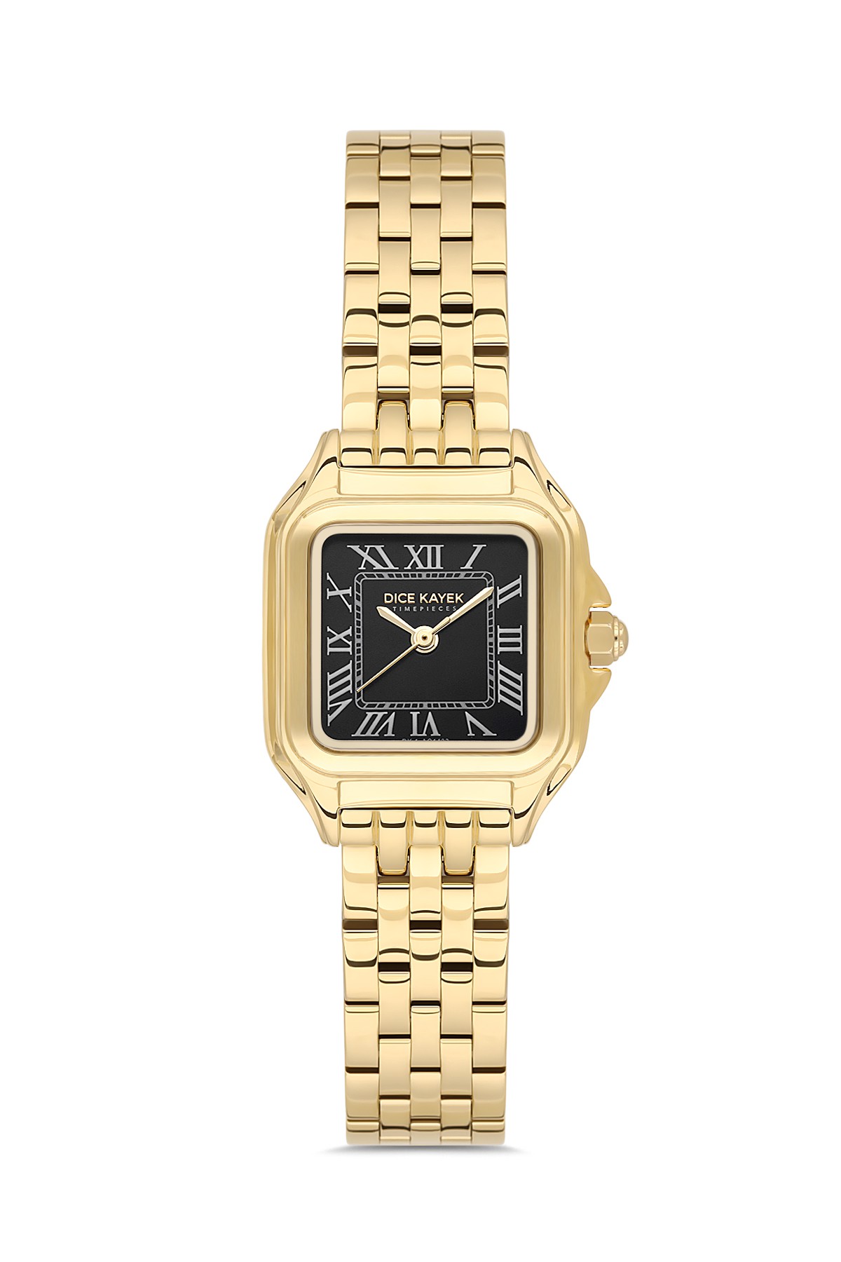 Kadın - Düz - Sari - Si̇yah - Paslanmaz Masi̇f Çeli̇k - 3 Atm - Sertleşti̇ri̇lmi̇ş Mi̇neral Cam - Dice Kayek - 24*24