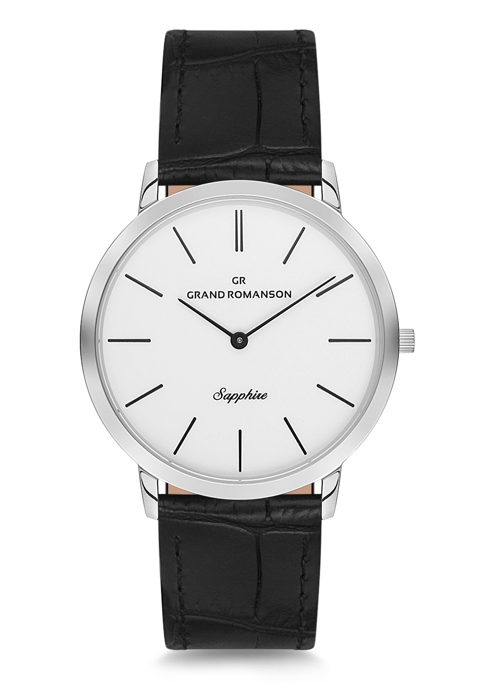 Erkek - Düz - Gümüş - Gümüş - Doğal Deri̇ Kordon - Si̇yah - 3 Atm - Grand Romanson