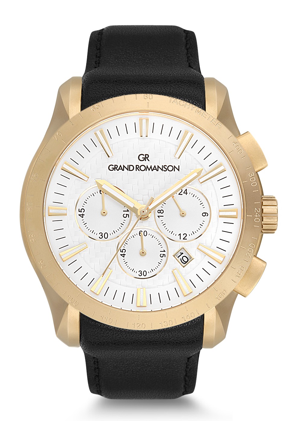 Erkek - Kronometre - Sari - Gümüş - Doğal Deri̇ Kordon - Si̇yah - 3 Atm - Grand Romanson
