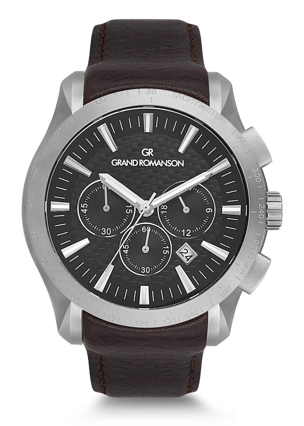 Erkek - Kronometre - Gümüş - Gümüş - Doğal Deri̇ Kordon - Si̇yah - 3 Atm - Grand Romanson