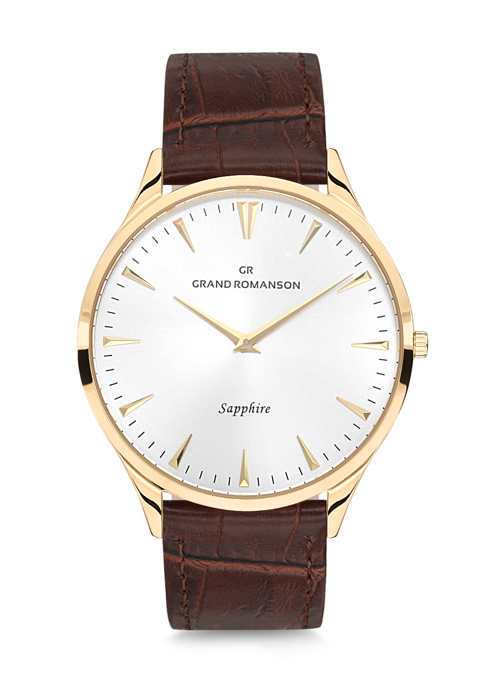 Erkek - Düz - Sari - Gümüş - Doğal Deri̇ Kordon - Kahverengi̇ - 3 Atm - Grand Romanson