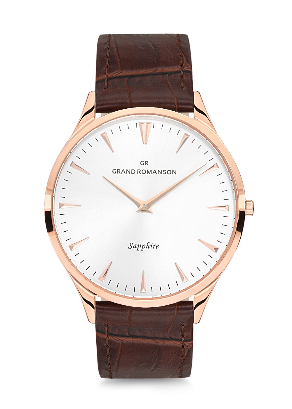 Erkek - Düz - Rose - Gümüş - Doğal Deri̇ Kordon - Kahverengi̇ - 3 Atm - Grand Romanson