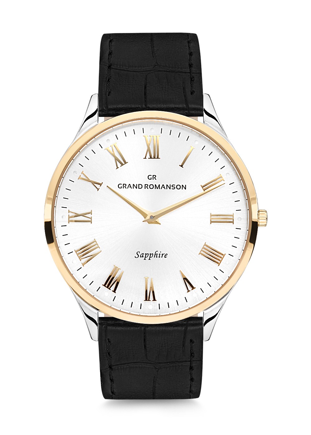 Erkek - Düz - Sari Beyaz - Gümüş - Doğal Deri̇ Kordon - Si̇yah - 3 Atm - Grand Romanson