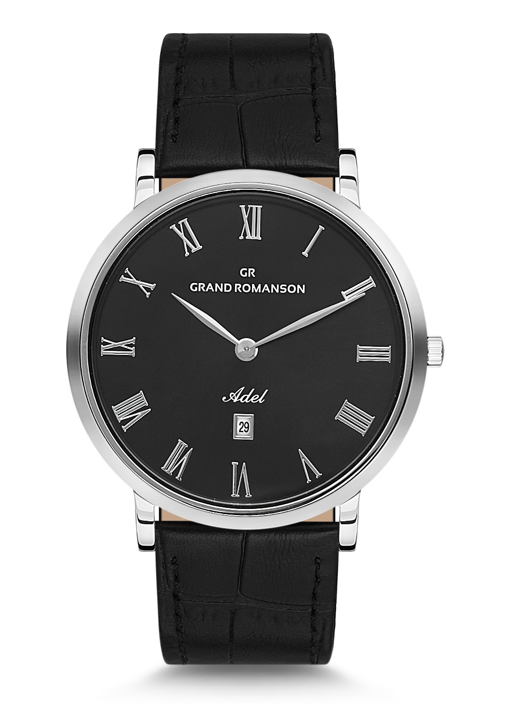 Erkek - Düz - Gümüş - Si̇yah - Doğal Deri̇ Kordon - Si̇yah - 3 Atm - Grand Romanson