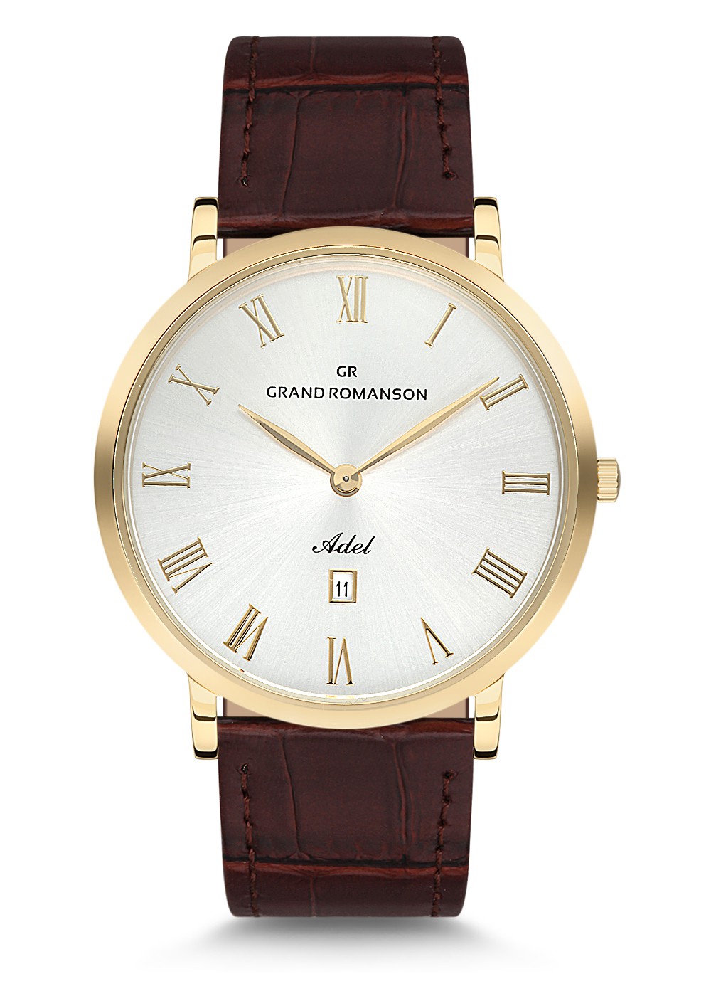 Erkek - Düz - Sari - Gümüş - Doğal Deri̇ Kordon - Kahverengi̇ - 3 Atm - Grand Romanson
