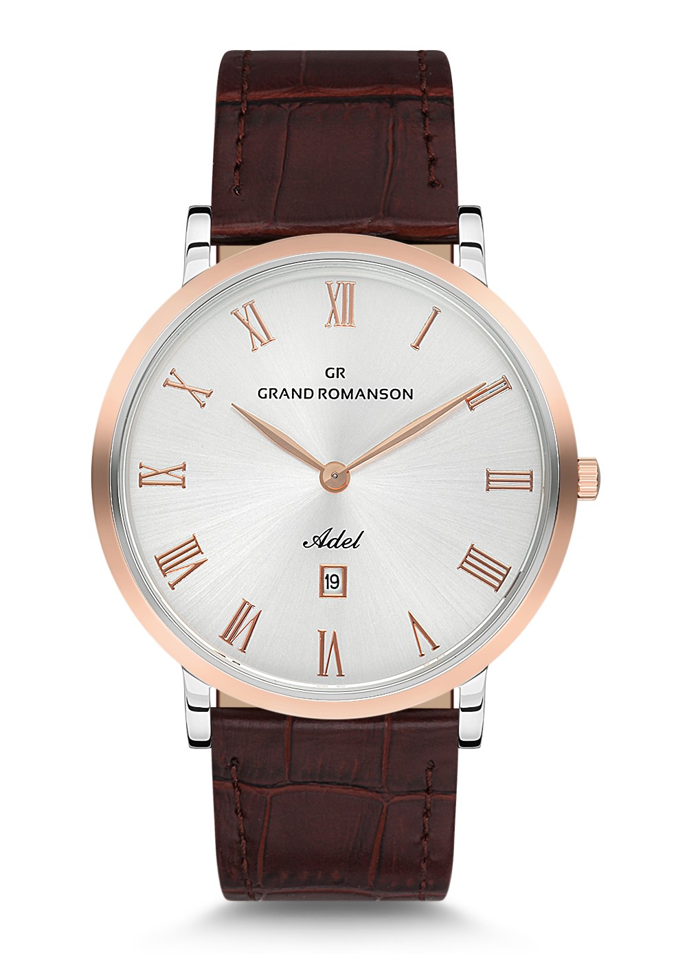 Erkek - Düz - Rose Beyaz - Gümüş - Doğal Deri̇ Kordon - Kahverengi̇ - 3 Atm - Grand Romanson
