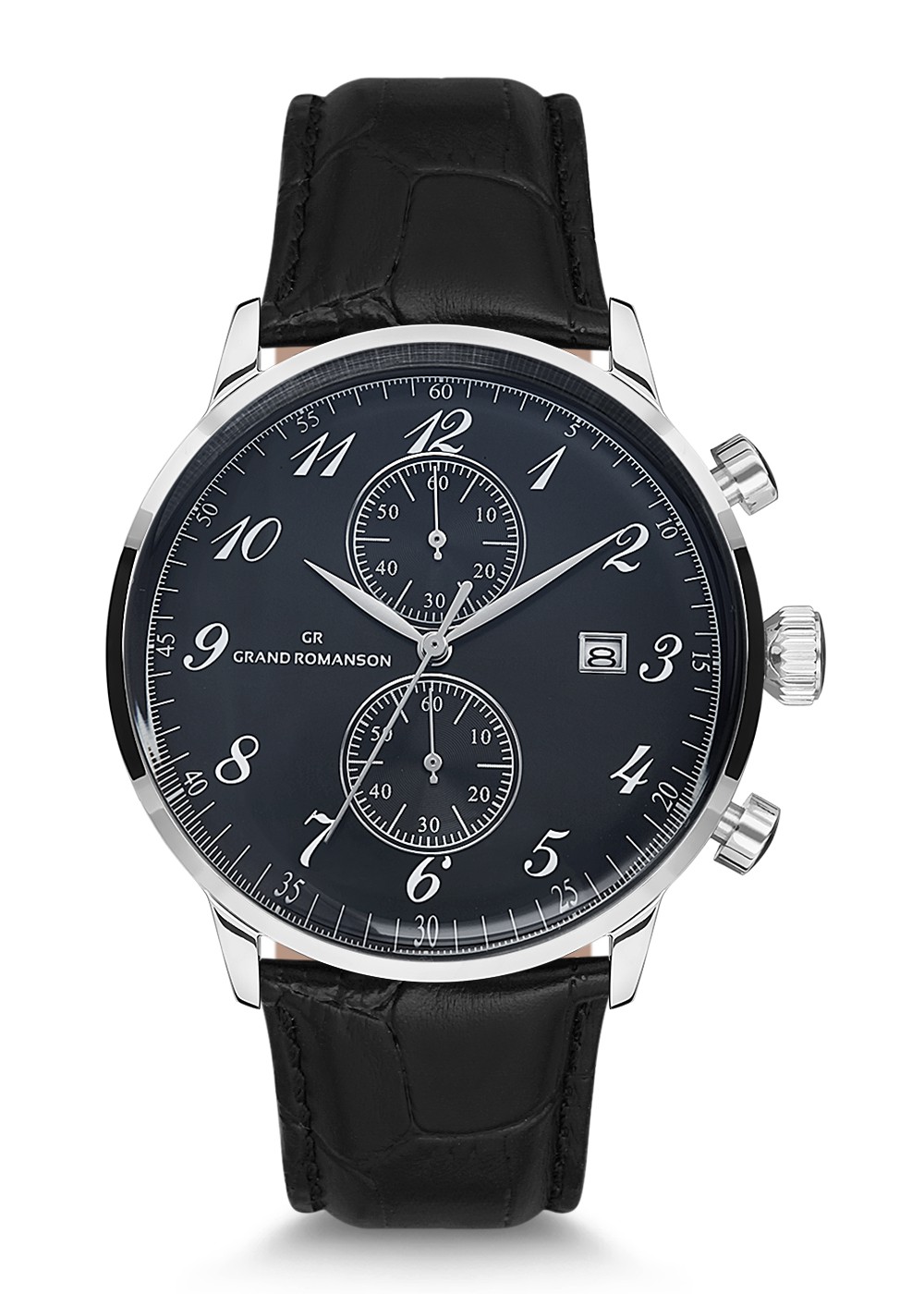 Erkek - Kronometre - Gümüş - Si̇yah - Doğal Deri̇ Kordon - Si̇yah - 3 Atm - Grand Romanson