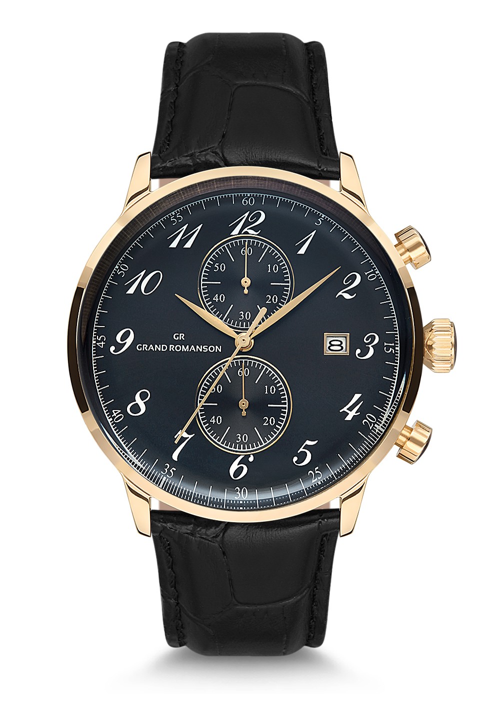 Erkek - Kronometre - Sari - Si̇yah - Doğal Deri̇ Kordon - Si̇yah - 3 Atm - Grand Romanson