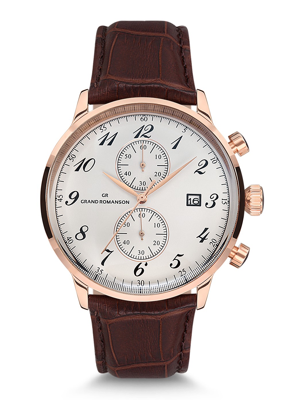 Erkek - Kronometre - Rose - Gümüş - Doğal Deri̇ Kordon - Kahverengi̇ - 3 Atm - Grand Romanson