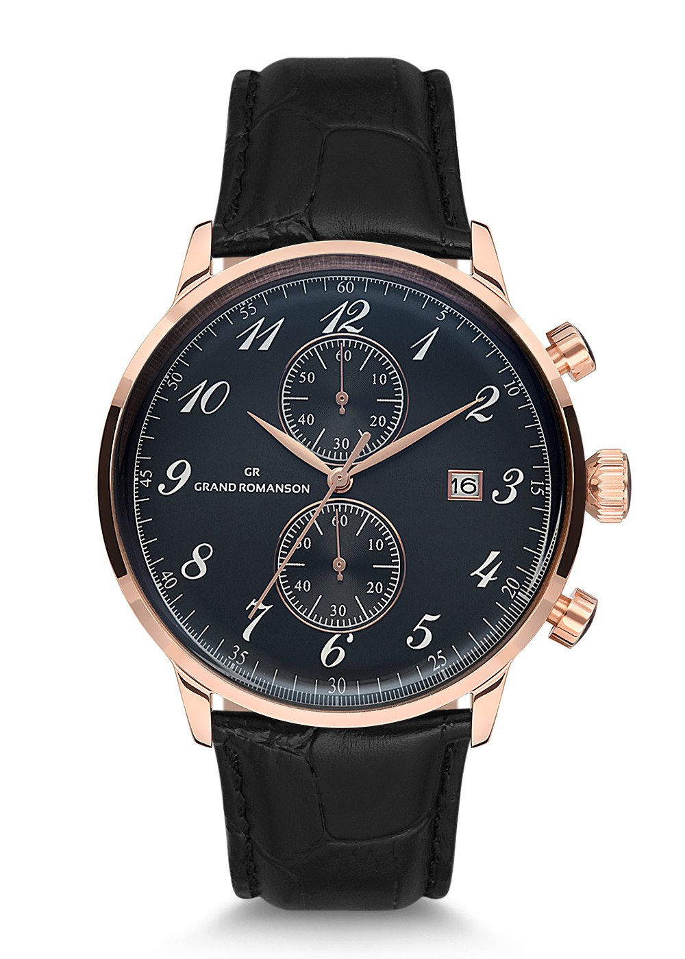 Erkek - Kronometre - Rose - Si̇yah - Doğal Deri̇ Kordon - Si̇yah - 3 Atm - Grand Romanson