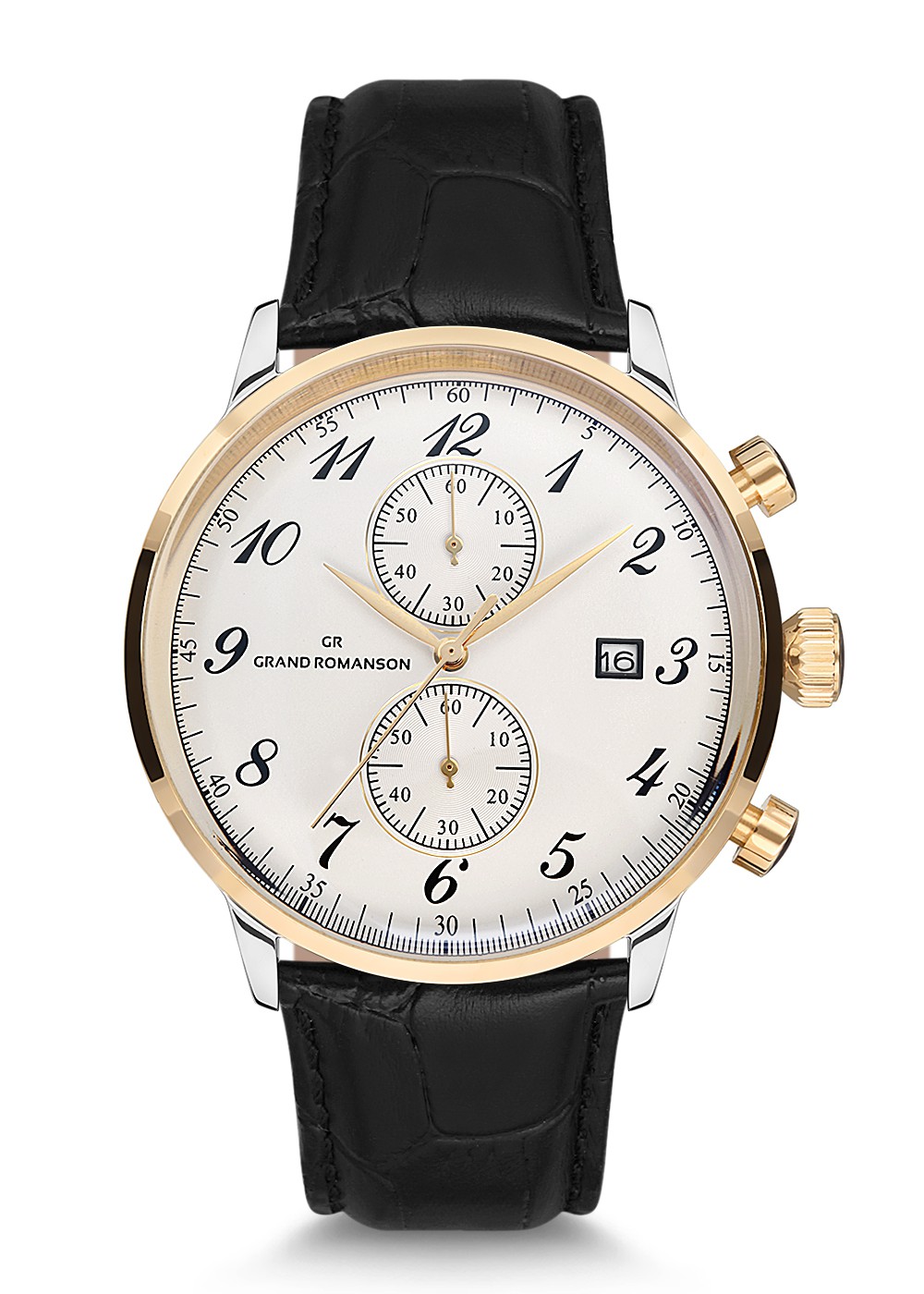 Erkek - Kronometre - Sari Beyaz - Gümüş - Doğal Deri̇ Kordon - Si̇yah - 3 Atm - Grand Romanson
