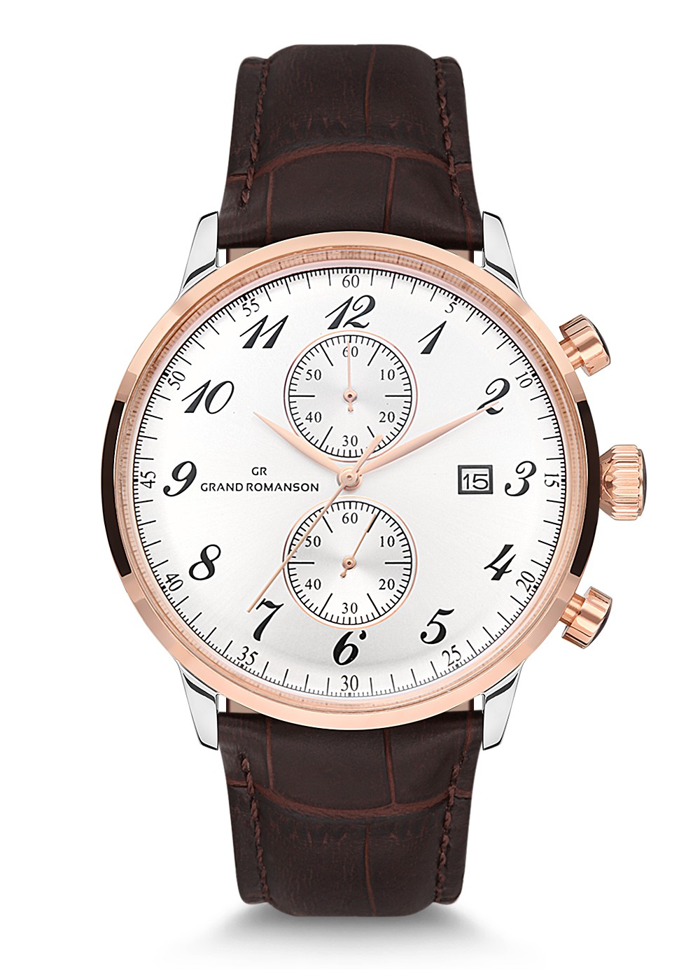 Erkek - Kronometre - Rose Beyaz - Gümüş - Doğal Deri̇ Kordon - Kahverengi̇ - 3 Atm - Grand Romanson