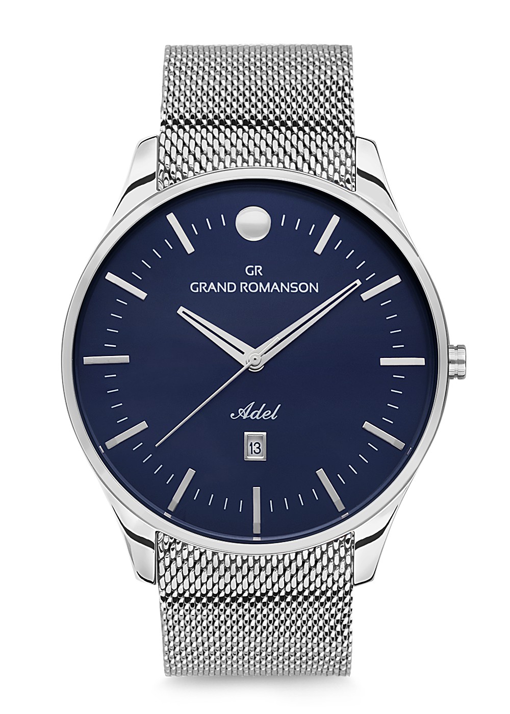 Erkek - Takvi̇mli̇ - Gümüş - Mavi̇ - Paslanmaz Masi̇f Çeli̇k - 3 Atm - Grand Romanson