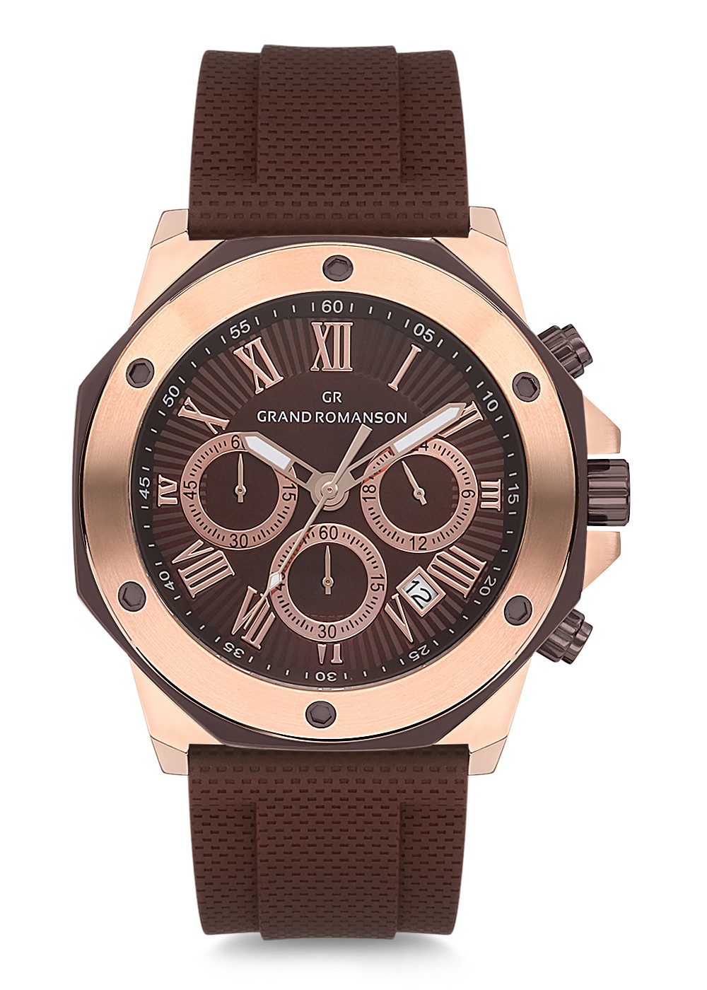 Erkek - Kronometre - Rose - Kahverengi̇ - Si̇li̇kon - Kahverengi̇ - 3 Atm - Sertleşti̇ri̇lmi̇ş Mi̇neral Cam - Grand Romanson
