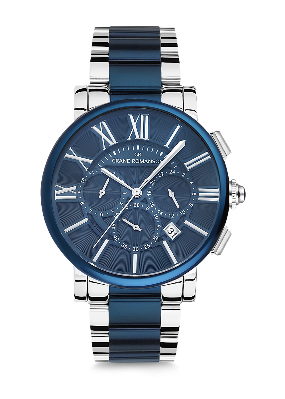Erkek - Kronometre - Gümüş Mavi̇ - Mavi̇ - Paslanmaz Masi̇f Çeli̇k - 3 Atm - Grand Romanson