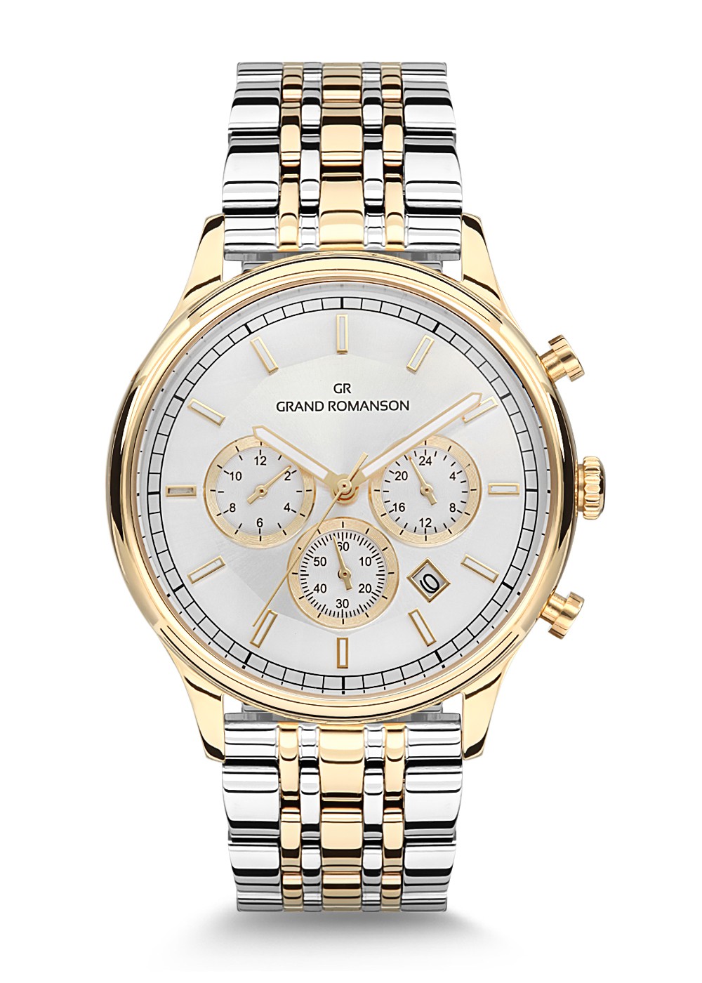 Erkek - Kronometre - Sari Beyaz - Gümüş - Paslanmaz Masi̇f Çeli̇k - 3 Atm - Grand Romanson