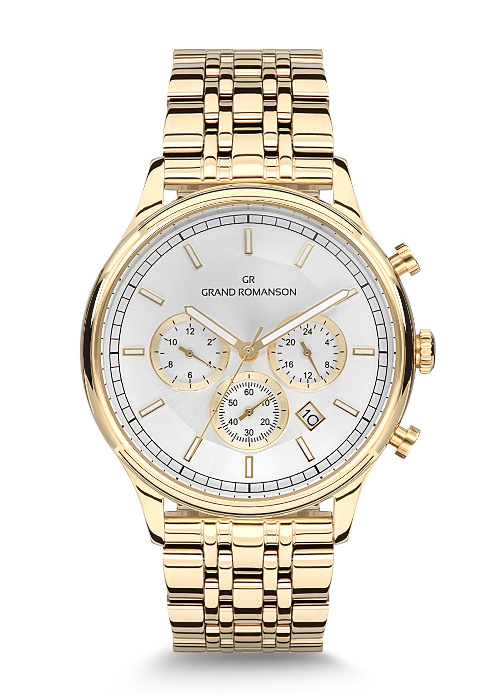 Erkek - Kronometre - Sari - Gümüş - Paslanmaz Masi̇f Çeli̇k - 3 Atm - Grand Romanson