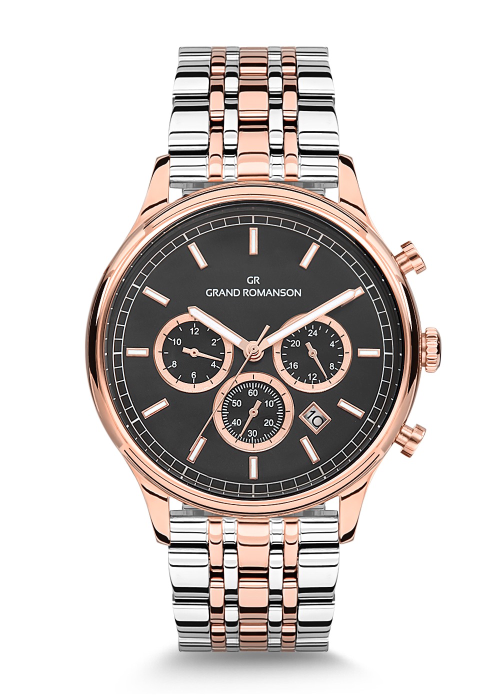 Erkek - Kronometre - Rose Beyaz - Si̇yah - Paslanmaz Masi̇f Çeli̇k - 3 Atm - Grand Romanson