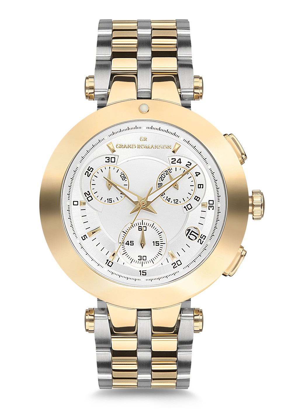 Erkek - Kronometre - Sari Beyaz - Gümüş - Paslanmaz Masi̇f Çeli̇k - 3 Atm - Grand Romanson