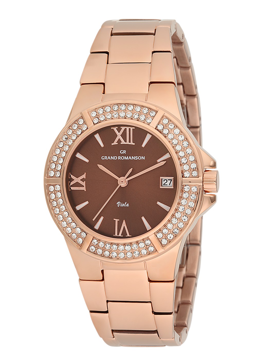 Kadın - Taşli - Rose - Kahverengi̇ - Paslanmaz Masi̇f Çeli̇k - 3 Atm - Grand Romanson