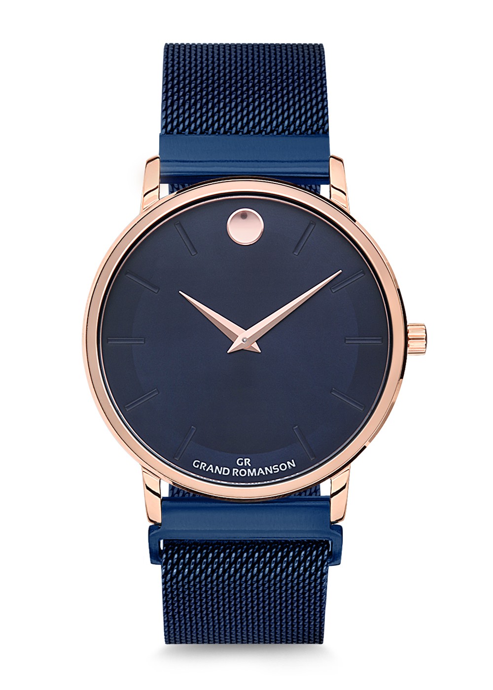 Erkek - Düz - Rose - Mavi̇ - Çeli̇k Örme Kordon - 3 Atm - Sertleşti̇ri̇lmi̇ş Mi̇neral Cam - Grand Romanson