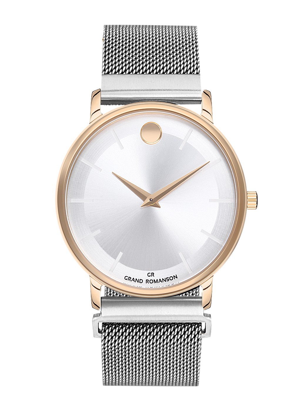 Erkek - Düz - Rose - Gümüş - Çeli̇k Örme Kordon - 3 Atm - Sertleşti̇ri̇lmi̇ş Mi̇neral Cam - Grand Romanson - 40