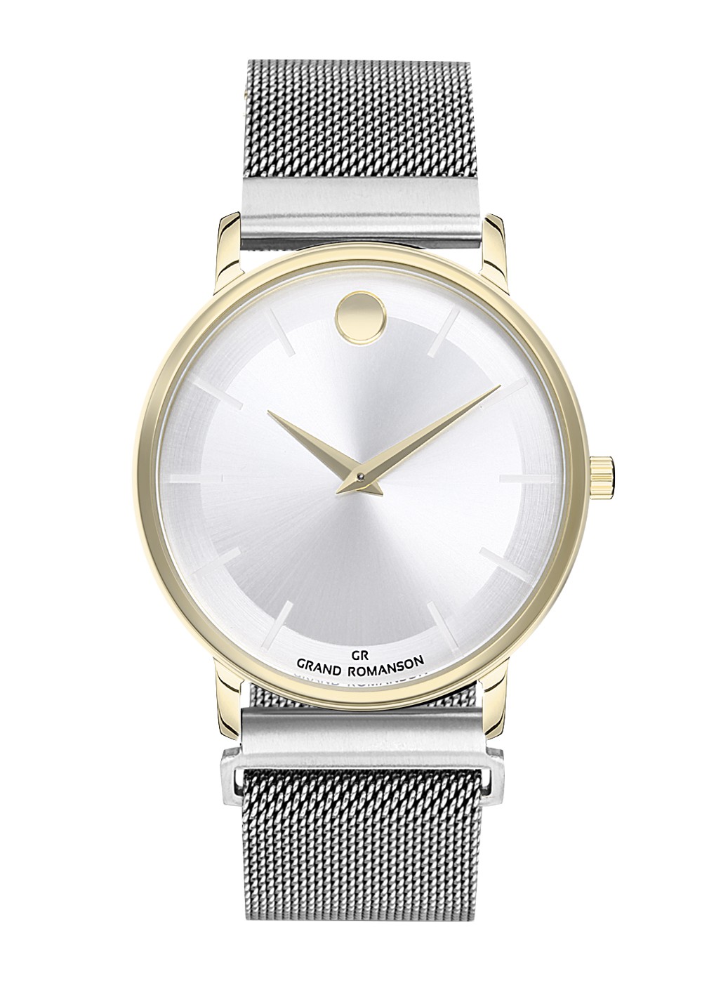 Erkek - Düz - Sari - Gümüş - Çeli̇k Örme Kordon - 3 Atm - Sertleşti̇ri̇lmi̇ş Mi̇neral Cam - Grand Romanson - 40